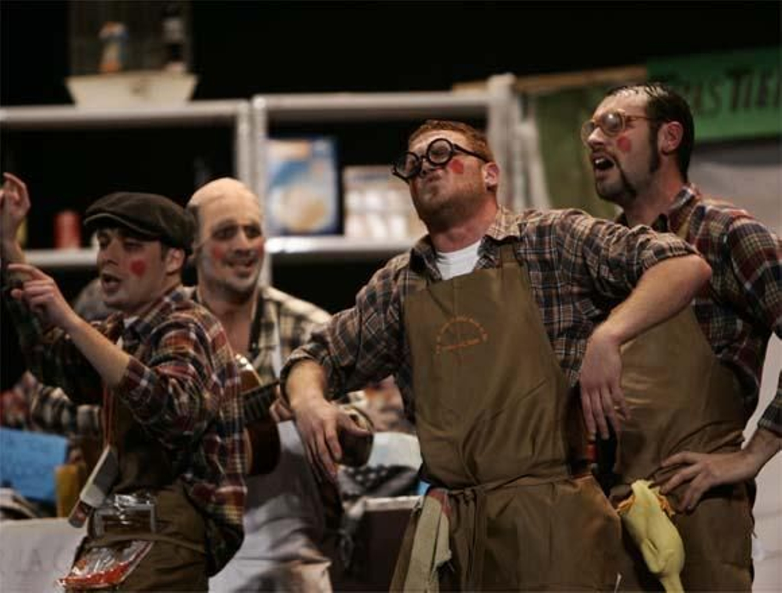 En preliminares: De almaceneros y con la música de La cuadrilla llegan estos chirigoteros gaditanos, que se estrenan en el Falla. Vienen con muchas ganas de agradar. En su primer pasodoble comparan los productos de su tienda con las cosas que se pueden encontrar en Cádiz. Segundo en el que un padre se dirige a un hijo que les roba y les maltrata. No están mal sus letras, tienen el respaldo del gallinero. Primer cuplé a la crisis, simpática letra. Segundo a la Duquesa de Alba, también tiene su gracia. El público se lo está pasando bien y ellos, sobre las tablas, también. Buenos puntos en el popurrí los de estos almaceneros, que vendían el hasta el chorizo del bocadillo en el colegio. Más que digno su pase, que concluyen arrojando bolsas de cotillón al público.