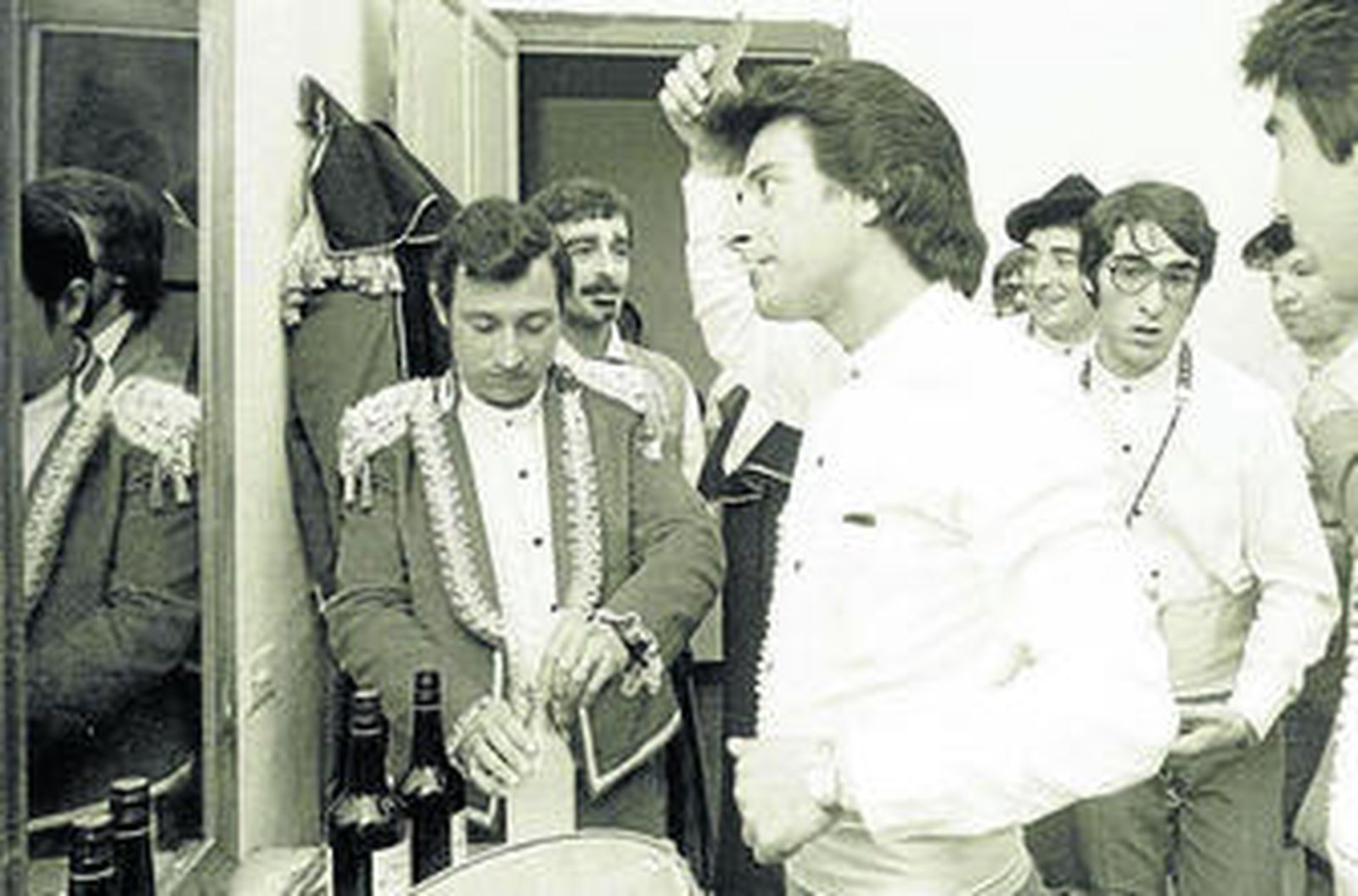 Ahí está José Sibón 'El Purri' peinándose en los camerinos del Gran Teatro Falla antes de salir a escena con la comparsa 'Requiebro', del grupo de Nuestra Andalucía. A la izquierda de la imagen, Manuel Argibay 'Galleguito' prepara un brevaje para aclarar la voz. A la derecha está el autor de esta comparsa, un jovencísimo Antonio Martínez Ares, con gafas y cara de no haber roto un plato en su vida.