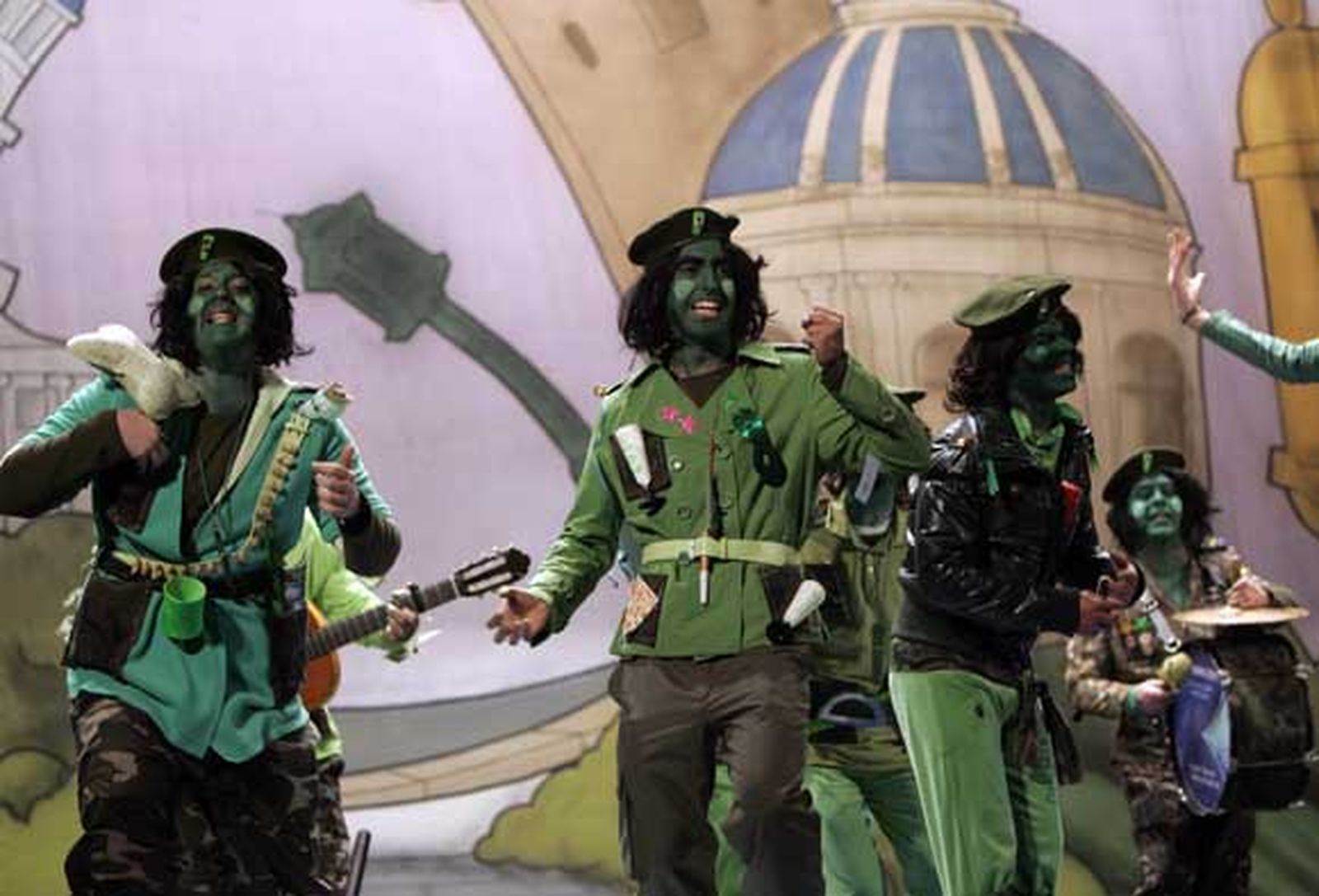 Mascadita la presentación de esta chirigota, con un curioso tipo de revolucionarios verdes muy verdes. En su presentación se quejan por el hecho de haber tenido que cambiar de nombre, que en principio iba a ser Los reberdes, sin el por cojones. Redundan en lo mismo en el primer pasodoble, en el que explican también como eligieron el tipo. Dedican el segundo a su novia, que al parecer presencia la actuación en el gallinero. Le ponen mucha pasión, pero van justitos de afinación. Cuplés a los problemas de tener señal analógica y digital en la tele y a Marichalar, mejor el primero. Poco chiste en el popurrí y mucha letra mascada.