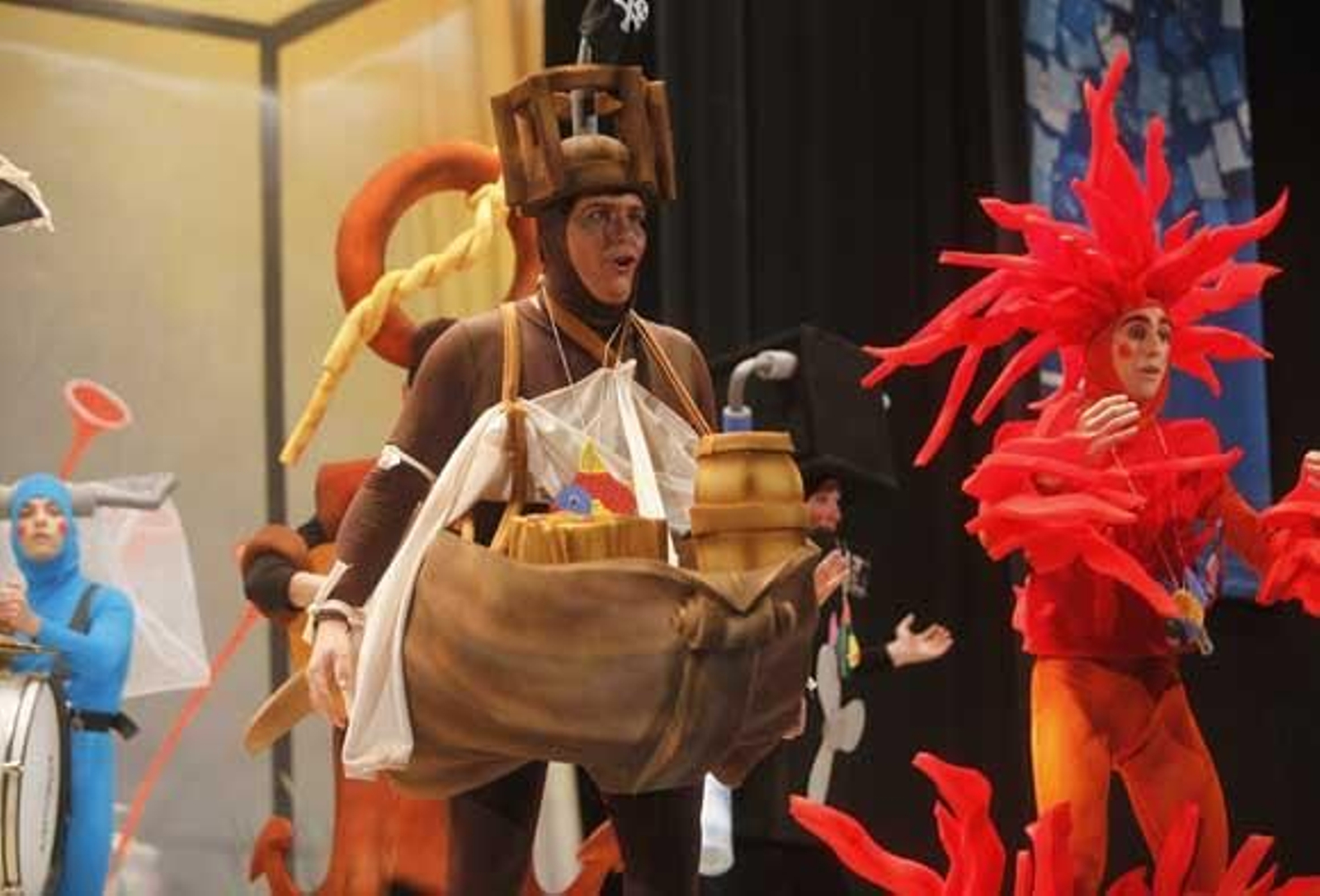 En preliminares: La chirigota de Mairena del Aljarafe se presentó con tipo de fondo de acuario, son los elementos de una pecera. Pasodobles interminables a la droga y a su abuela Andalucía, cortados a base de gracietas que ralentizaban el desarrollo de la actuación. Tras un sinfín de gracietas sin mucha gracia, los cuplés, a los mosquitos del Sheriff y al Gobierno, más o menos. Popurrí sin chicha, rematado con su clásica cuarteta bonita de teatro en pie. Al menos su gente, que era lo que quedaba en el Falla, les hizo sentirse apreciados en el teatro.