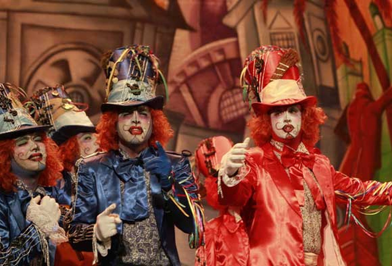 En preliminares: La comparsa de Algeciras viste un tipo de locos con un toque del sombrerero loco de Tim Burton, su disfraz guarda mucho parecido con 'Las locuras de Martín Burton' solo que ellos van cada uno de un color. Piropo a Cádiz y a los que como ellos vienen de fuera para cantar en el Falla hoy en el primer pasodoble. En el segundo intentan mitigar el dolor de una mujer abandonada por su hijo escribiéndole cartas en su nombre. Flojos cuplés, bastante mascados además, y popurrí con buena intención pero que no acaba de cuajar. La interpretación empeora bastante respecto a otros años.