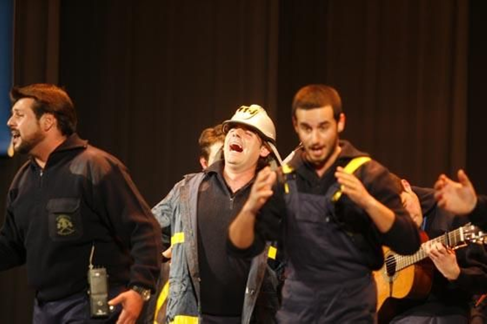 Muy jóvenes los componentes de esta comparsa de Sanlúcar de Barrameda, que se presenta en el Falla con tipo de bomberos. Buenas voces, aunque poco conjuntadas. Abusan excesivamente de su octavilla. Muy aplaudido su segundo cuplé, dedicado al lío de las entradas. El resto del repertorio, discreto. Nota:*