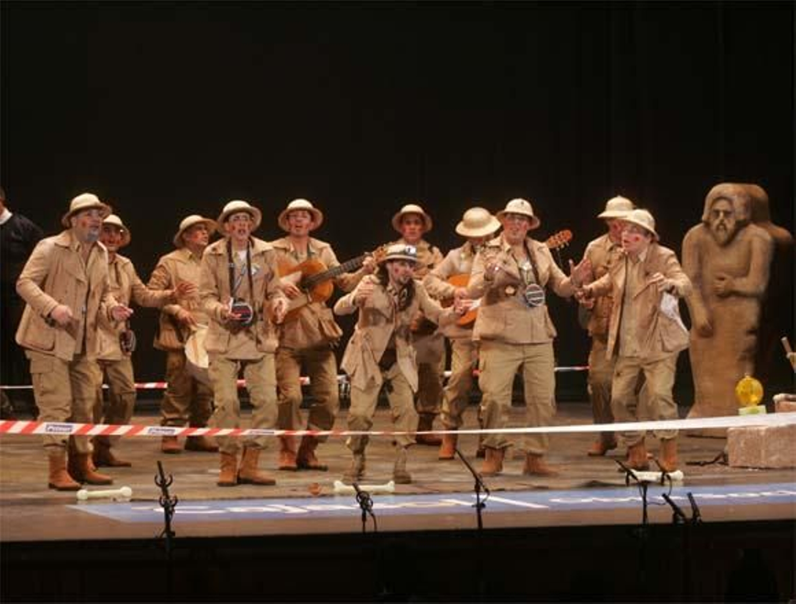 De exploradores, cual Indiana Jones, llegan estos chirigoteros isleños, que vienen en busca de una momia... Muchas ganas en su estreno en las tablas. En el primer pasodoble aseguran que vienen a explorar la Tacita. Segunda copla a Andalucía, pasando por todas sus provincias. El primer cuplé a su vecina, que tiene piercings por todas partes...gran bastinazo para rematar. El segundo a la duquesa de Alba, para variar. Poca cosa. En picado en el popurrí.