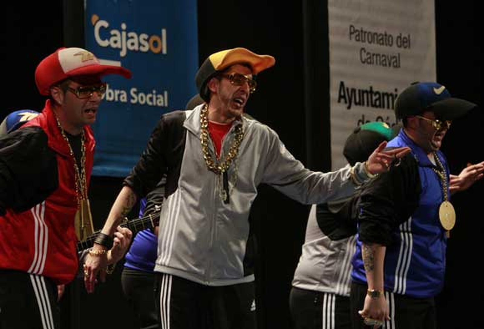 En preliminares: De canis, como su nombre indica, llega esta chirigota isleña que se estrena en el concurso. Llevan el chándal, la gorra, los tenis de muelle... vamos, el kit completo. Cantan con muchas ganas, demasiadas, hasta atropellarse. Dedican sus posodobles a un niño de padres divorciados y al flamenco, con mejor intención que ejecución. Primer cuplé de pelo, a Pipi Estrada y Lucía Lapiedra. Segundo para una novia muy fea. Popurrí de nuevo con más ganas que otra cosa. Les toca seguir mejorando. Al menos han pasado un buen rato y se han llevado la ovación de su gente.