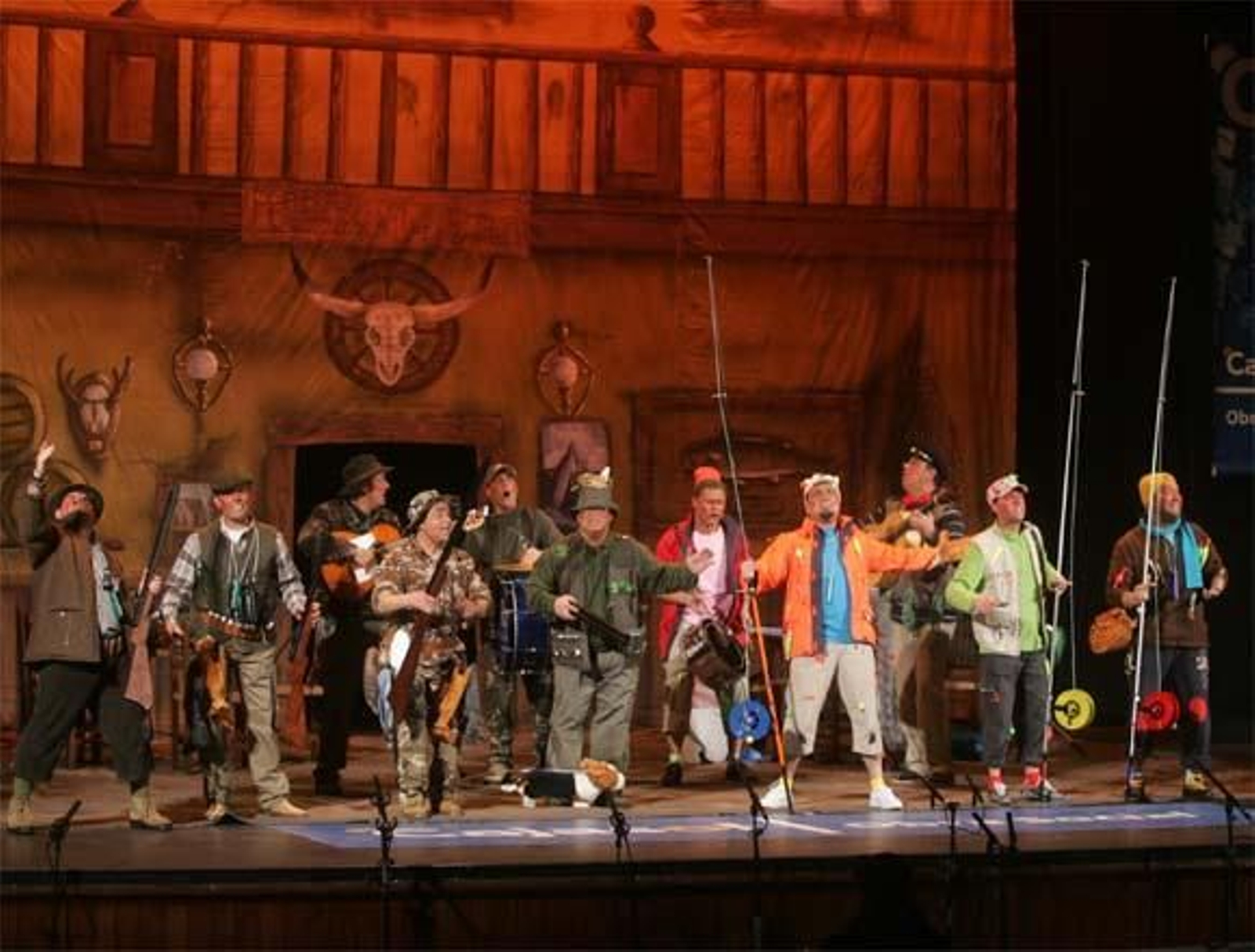 Presentan una peña de cazadores y pescadores, tela de exageraos. Vacilan de capturas haciendo tipo en la presentación. "En Cádiz lo que hace falta son soluciones". Así concluye el primer pasodoble, que lamenta que proyectos de futuro como el Bicentenario intenten ocultar la cruda realidad de los gaditanos. Original letra al 'niño medicamento' de Algeciras, concebido para curar a su hermano. Crítica a los que se oponen a esta posibilidad médica, buena letra con un tema hasta ahora inédito en el concurso. En el primer cuplé, su vecina quiere mejorar su físico... segundo al segundo puente, que está poniendo celoso al puente Carranza. Normalitos. A menos en el popurrí, regular.