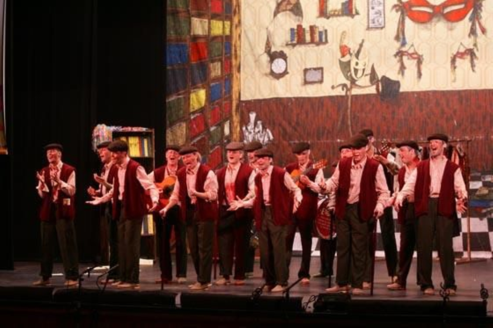 De viejos copleros vienen estos comparsistas de Puerto Real, que sorprenden con un buen grupo de voces. Bonitas letras de pasodoble, el primero a su mujer y el segundo al terrorismo. Defienden con arte sus letras y reciben el calor del público. Nota:*