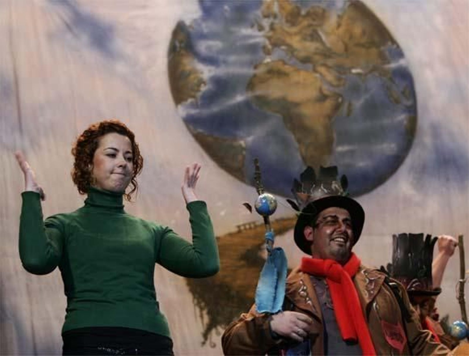 En preliminares: Sobre las tablas la comparsa chiclanera, con tipo viajeros nómadas. Buena presentación en la que hacen alarde de voces, salvo algún pequeño desfase. Aún así, promete esta agrupación. Homenaje a la comparsa Los hombres del campo, de Villegas, en el primer pasodoble, muy aplaudido. Segundo pasodoble crítico con la Ley de Memoria Histórica. Malos cuplés, que no consiguen arrancar una sola risa. Eso sí, tras el estribillo, que interpretan con mucha fuerza, logran el reconocimiento del respetable. Mejor en música y en voces el popurrí que en letras. Se vuelcan en la última cuarteta del popurrí y el público agradece el esfuerzo realizado. Buen grupo.
