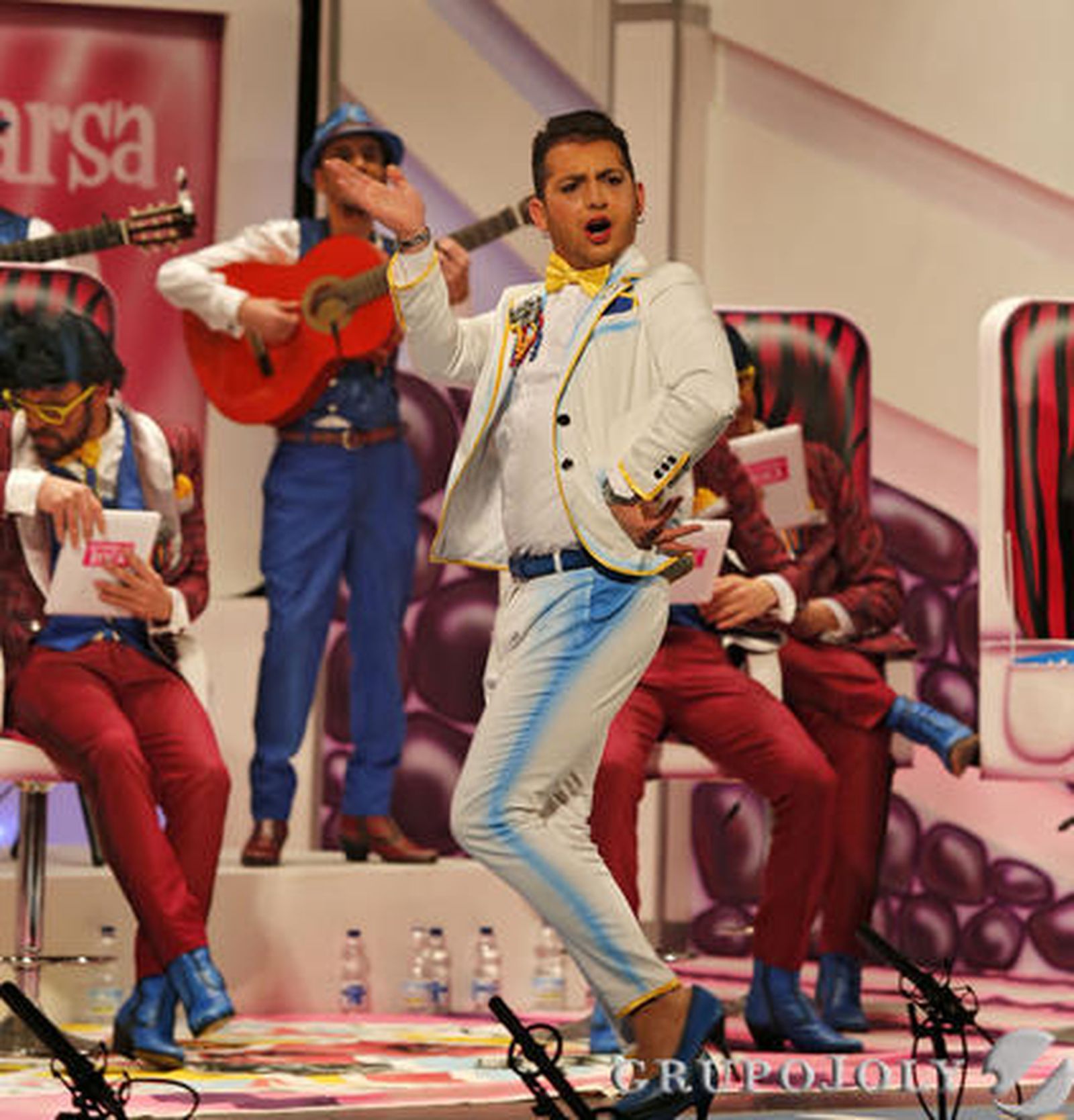 Pedro Tamayo subido, como puede, a los tacones introduce los temas a tratar por esta televisiva comparsa que nos hablan del balconing y de un borracho arrepentido en los pasodobles de su pase semifinal. Quizás unos temas no con tanto poderío para aspirar a un pase que, por lo que llevamos visto en las dos anteriores fases del Concurso, parece complicado. El tipo, cierto es, es complicado y difícil de defender, pero este grupo de voces lo intenta y brilla, sobre todo, en varias cuartetas del popurrí. Antes, profundicemos un poquito en los pasodobles. En el primero hacen una división un tanto injusta. El socorrido ellos contra nosotros. En este caso ellos son los jóvenes ingleses y alemanes, parece que todos vienen a España a correrse la juerga; nosotros son los jóvenes españoles que viajan al extranjero, que todos se van para buscar curro. "Ellos son una vergüenza, nosotros valientes y orgullosos". En el siguiente, pasodoble-historia donde un padre al borde de la muerte le confiesa a su hijo que fue un canalla porque trató muy mal a su pareja. Le pide a su hijo que cuide a su pareja. En el primer cuplé con las ecografías en 4D se ven los detalles del bebé, pero cuando fue a ver a su niño saltaron los anuncios de Canal Sur. Y de la ecografía a un poco más al sur en el segundo cuplé, pues la mujer no se depila y tiene ya "un felpudo". No los veo como aspirantes a la final.