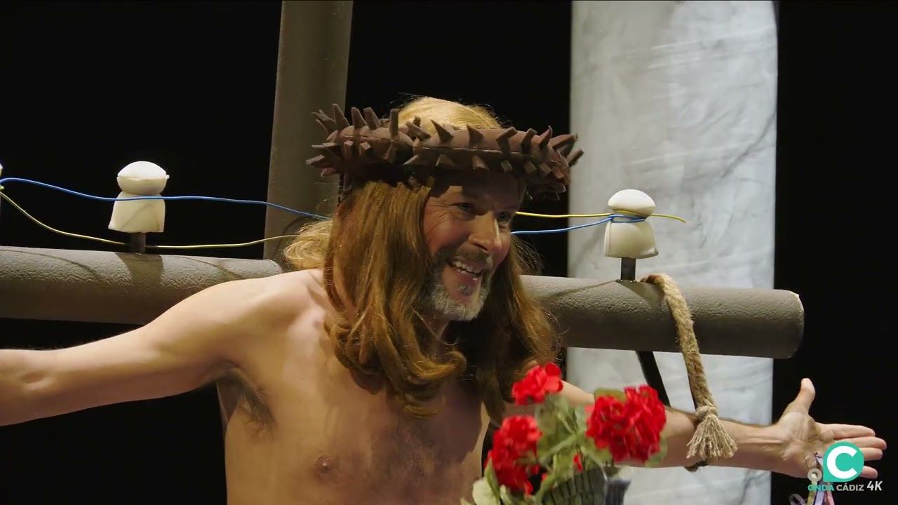 El tipo. La pasión de Jesucristo. Las coplas. La crónica de una muerte más que anunciada llega a su estación más importante: la crucifixión. El cuarteto de David Caro, Antonio Labajo y Antonio Beiro crece exponencialmente en su tercer pase gracias a una escena que se presta más a la comicidad y que puede entrar más fácil al público. Con su parodia más irreverente, el grupo vuela con la aparición de la Virgen María –protagonizada por Blanca Puente–, que copa los mejores golpes y da mayor brillo a la escena por su interpretación. Junto a ella, la aportación del Espíritu Santo en el tema libre deja varios momentos con mucho age. Un pase excelso que demuestra la importancia que debe tener el texto en la modalidad y que el estilo clásico en métrica y rima sigue funcionando siempre que se haga bien. Desde el inicio de la parodia aparecen buenos golpes, como que Jesús clava las verticales en los crucigramas. La Diosa Mirian –Peralta– plantea un diálogo con el Señor con toquetazo a Enrique Miranda y una gran maldad al decir que “a todo carnavalero le llega su Antonio Martín”. A partir de aquí, todo el foco se lo lleva la Virgen María, que se fuma un cigarro de su nombre para aliviarse de la testosterona que le rodea, se mete con el patriarcado y lleva una croquetas que son “para tocarles las palmas”. Se mantienen con los cuplés, en los que esperan que soterren la carrera oficial de la Semana Santa porque “la procesión va por dentro” y la Virgen de la Palma quiere ver a la Macarena parando un maremoto. Entre la Virgen María y el Espíritu Santo bordan el tema libre, sobre todo cuando la Virgen canta que era feliz en su matrimonio con San José. Y Jesús puede palmar, pero no le da tiempo de ir a Conil. Spoiler: el siguiente capítulo será la resurrección.