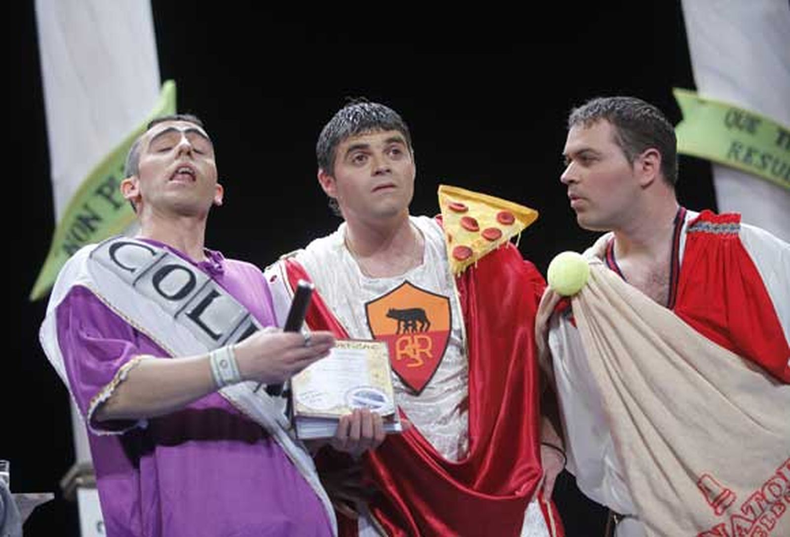 En cuartos: La historia de Cádiz, tomo tres. Melkart cede el testigo a los romanos para que cuenten la conquista de Gades. Los Balbo y Columela reciben a César buscando un carguito de senador... Buenos golpes en la parodia, auténtico cuarteto gaditano, además le ponen mucho arte a sus interpretaciones. Cuplés simpáticos para la de esculturas que hicieron al llegar a Gades y para su mujer, que se apunta a clases de feng-shui, aunque no acaban de cuajar entre el público. En el tema libre, César se interesa por el Carnaval primitivo, ese que contaba con agrupaciones como 'Las viudas de los visabuelos del 55... antes de Cristo'. Organizan un concurso de Carnaval, de nuevo con buenos golpes. Todo rimado, tiene mucho trabajo su repertorio. Van un pasito más allá respecto a su primer pase.