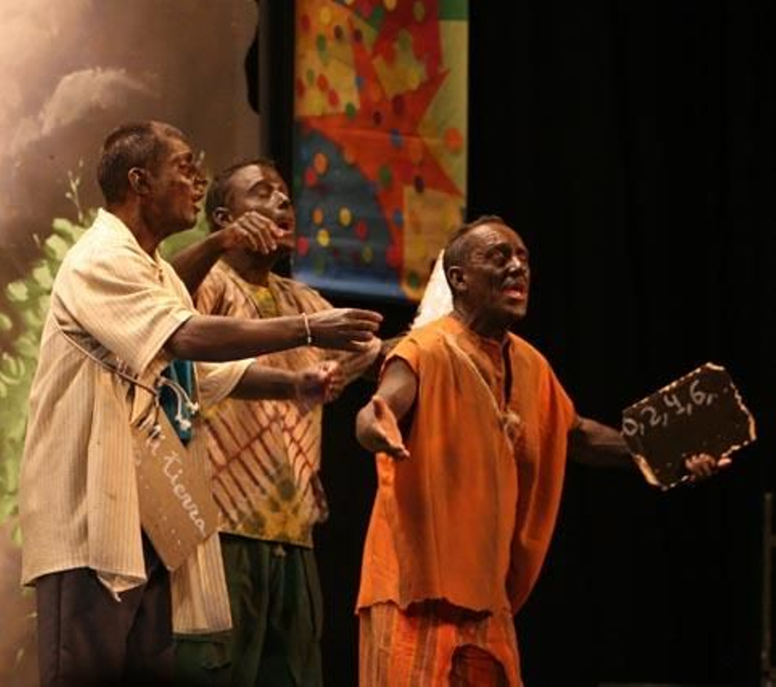 Estos comparsistas de Punta Umbría representan en las tablas del Falla una escuela en pleno corazón de África. Bien afinados, suenan bonito, aunque regulares las letras. El público algo frío, muchos no han vuelto aún del ambigú. Eso sí, les despide con aplausos. Nota:*