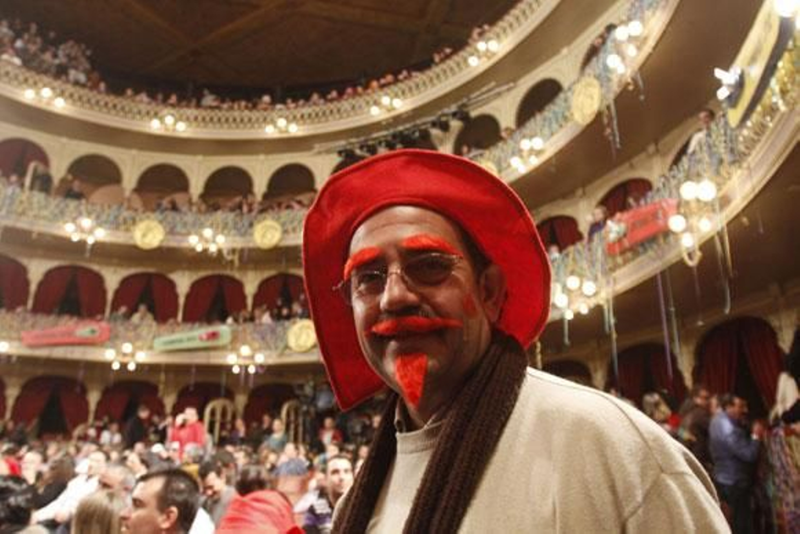 El público también contribuye y colorea la sala con disfraces, pelucas y alguna que otra bufanda de Los hinchapelotas, una de las agrupaciones que no superó el corte y a la que muchos echan de menos esta noche sobre las tablas.