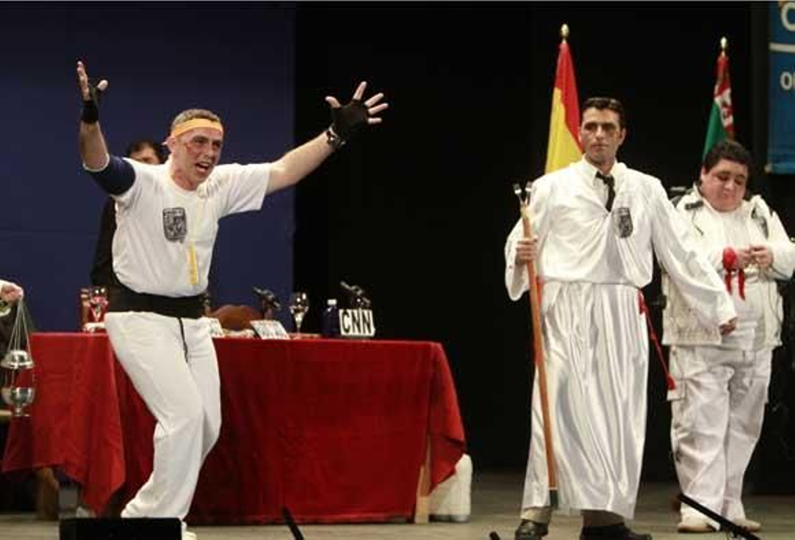 En preliminares: Despropósito de principio a fin. La primera escena, con un cofrade encapuchado que recordaba a los comunicados de ETA, prometía algo más de lo que fue la actuación de este cuarteto. Parodia sin pizca de gracia, cuplés que sólo consiguieron silencio y un tema libre surrealista, con temas metidos con calzador y sin conexión ninguna. A mejorar para el año que viene.