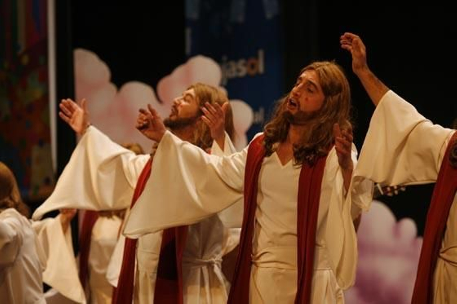 Última agrupación de la noche y de la primera semifinal. Con mucho arte y entre pétalos de rosa entran los mesías de Vera Luque. Primera letra a Adolfo Suárez, "un valiente defendiendo libertades". Parte del patio de butacas se levanta con la letra del autor gaditano. Segunda a Javier Ruibal, que presencia la actuación desde un palco cercano al escenario. Primer cuplé al niño de Nuria Bermúdez, "que tiene parecido con toda la plantilla del Barcelona". Segundo para un spray que vuelve azul los restos de cocaína, "que si lo pasan por la carpa iba a parecer la aldea de los pitufos". Muy buenos los dos. Consiguen animar al Falla, que presenta ya muchos huecos vacíos, con su popurrit. Nota:***