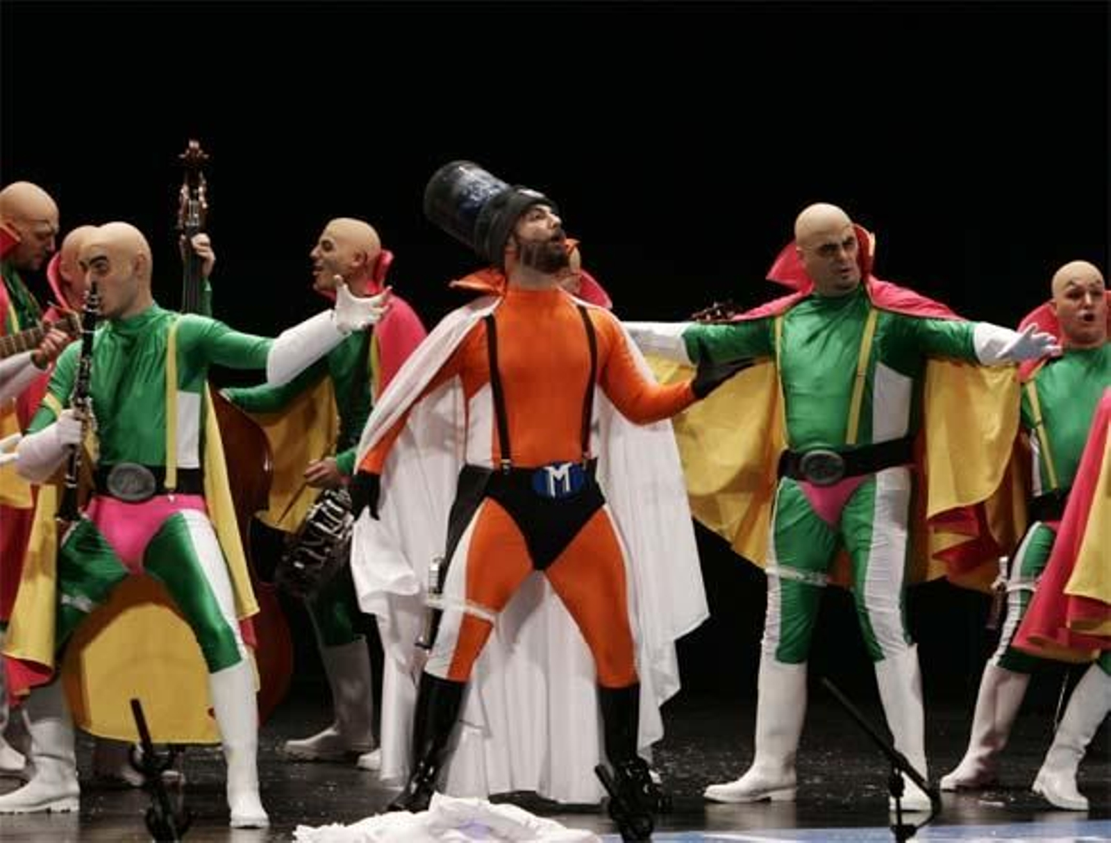 Tipo inspirado en el Doctor Maligno de Austin Powers, con detalles muy simpáticos. Se le nota la base de la Orquesta Caballati, buenos detalles en su presentación. Son muy malvados y lo dejan claro en el primer pasodoble, con una música muy extraña. Son responsables de casi todo lo malo que pasa en Cádiz, menos que en la pista de hielo se pueda nadar. Toman forma de coro para defender al coro a pie, sigue chocando la música del pasodoble. Primer cuplé al cambio climático... que acaba con el tornado y la copla que hizo de ello el coro de Valdés. Letra de máxima actualidad, gran mérito (aunque ha salido un poco mascadita). En el segundo acusan a Rajoy de gafe, regular. Buenos puntos en el popurrí y otros no tan buenos. Se les agradecen las ganas y el espíritu innovador.