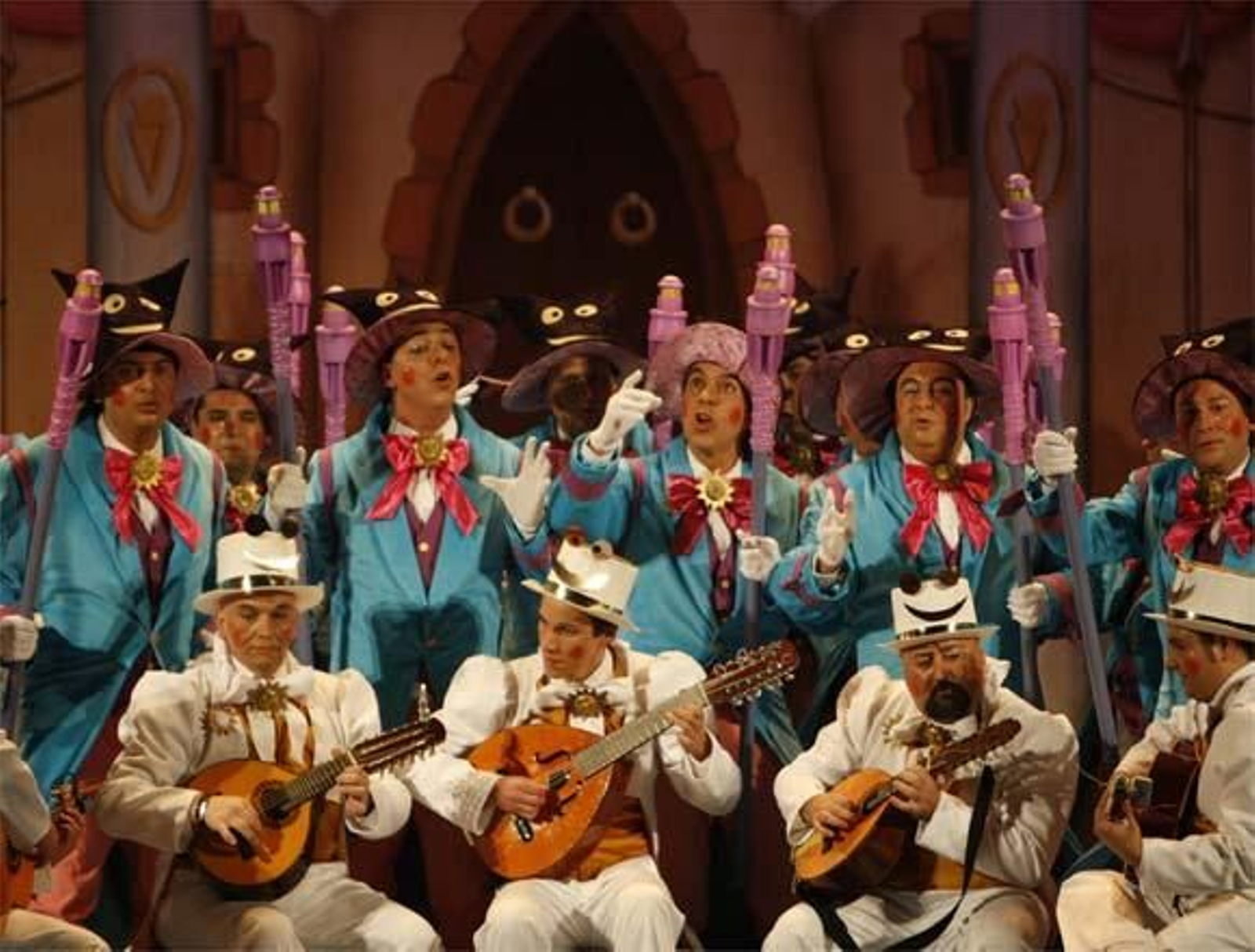 En preliminares: Tipo alegre y fantasioso para abrir las puertas del parque temático de Cadilandia. Espectacular presentación, que acaba con una explosión de confetti desde el paraíso. Interpretación perfecta, qué bien suena este coro. "Menos reuniones y más tangos". Se reivindican en su primer tango, precioso musicalmente, y critican a aquellos que se opusieron a su formación de coro a pie. Otro gallo hubiera cantado si no hubieran entrado en la final del pasado año, dicen. Gran letra al drama de un niño que sufre la separación de sus padres. Estruendosa ovación para el tango. Primer cuplé al parecido de las mascotas con sus dueños, bastante bueno. En el segundo comparan el carnaval con el fútbol, también muy divertido. "En Cádiz ya no sabemos que hacer, que tenemos menos trabajo que el tractorista del coro a pie", gran estribillo. En el popurrí cuentan las virtudes del parque temático gaditano en el que viven. Innovaciones musicales en el popurrí. Cantando suave, aunque potentes cuando es necesario, demuestran que su presencia enriquece la modalidad. Levantan a casi todo el patio de butacas.