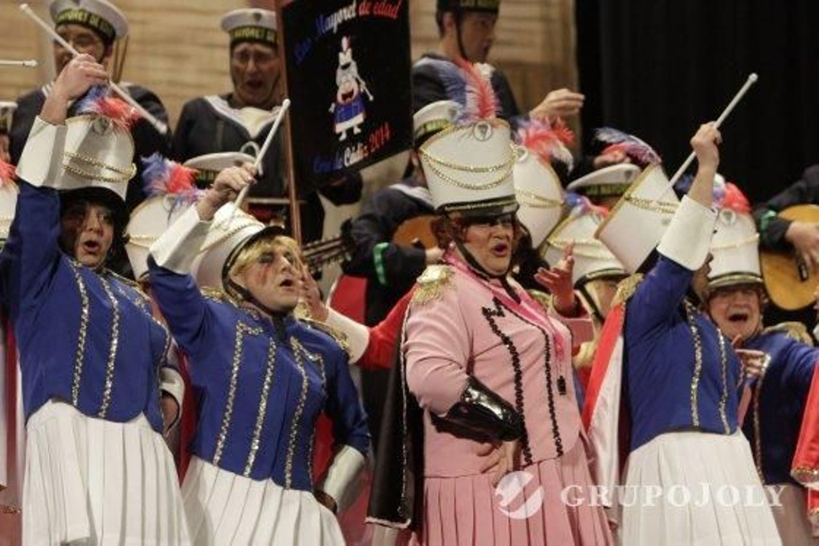 Las coplas. Las majorettes han cambiado mucho. Mucho desde su primera visita a Cádiz en el siglo pasado. De un pase a otro, no tanto... Presentación subida de tono con crítica al Ayuntamiento y a lo que ha cambiado Cádiz. En los tangos, la interpretación sufre un pequeño traspiés en el primer tango, hay algún olvido, en la letra. En ésta acusan a Ortega Cano en un paralelismo taurino que está bien llevado. "No me interesa el mundo de los toros, pero voy a hablar de la mala faena que hizo Ortega Cano de noche en la carretera", introducen. El maestro entró "a matar" con una estocada "que fue una borrachera y un volantazo". Así,condenan, "no pidas el indulto y coge al toro por los cuernos, cobarde, y que la puerta grande sea de la cárcel". Una crítica, no menos rotunda, en el segundo tango. Tildan a la alcaldesa de Napoleona, que sólo quiere que Cádiz viva del turismo pero no lucha por la Escuela de Hostelería o por Astilleros. El asunto termina pidiendo lucha y, a lo Robespierre, revolución "como la francesa y que rueden las cabezas de la derecha". Mejor el segundo cuplé sobre la de pastillas que toman y que acaban tan trastornadas que creen que han visto a Rajoy en camerinos (chirigota del Vera). El de la chica peruana de Movistar regulera. Flaquea la interpretación y se nota mucho en el popurrí.