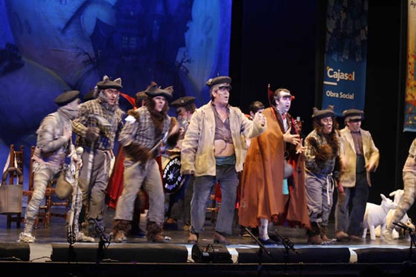 Tras ellos llegó la única comparsa compuesta íntegramente por mujeres del concurso, Las aceituneras de Barbate. Regular tirando a mal en voces, música y letras, al menos contaron con el apoyo del graderío, que premió con muchos aplausos el esfuerzo realizado por estas comparsistas. Más suerte tuvo la chirigota Los que van como Cadi, que desde el primer momento cayó en gracia al auditorio con su divertido tipo de cangrejos de La Caleta. Bonitos pasodobles a su pasión por cantar en el Falla uno y muy crítico con el Ayuntamiento y su uso de la televisión municipal el otro, buen primer cuplé a Muñoz y Baldasano y genial el segundo al concejal de Fiestas Vicente Sánchez, que sacó grandes carcajadas del público. Simpático popurrit muy metido en el tipo el de otra chirigota que va a hacer reír mucho en el presente concurso.