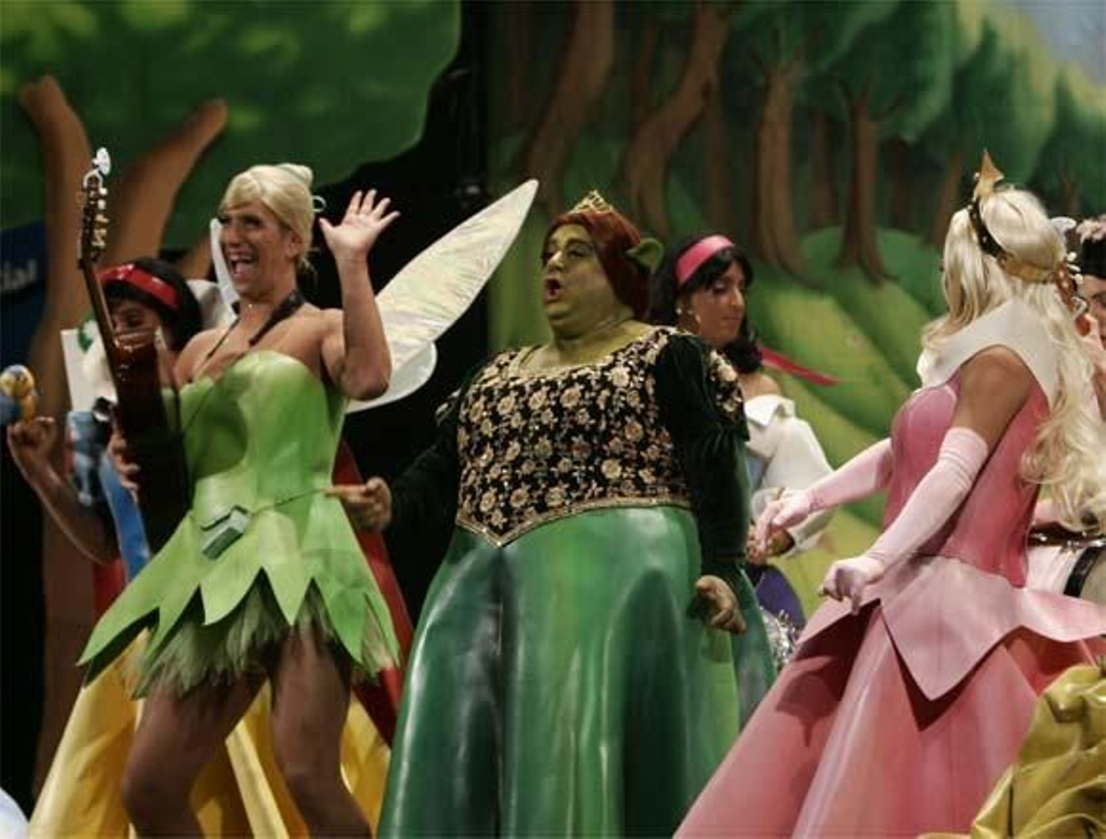 Genial el tipo de la chirigota del Canijo, de princesas de Disney. Impresionante el parecido del Canijo con Fiona, la mujer de Shrek (que es de Dreamworks, pero según él "las gordas, aunque no salgan en Disney, también tienen derecho a cantar en el Falla"). Divertidísimo el tipo y la presentación, que se gana la ovación del teatro. Precioso piropo a Cádiz en su primera letra, mucho mejor que Disneyworld. Pasodoble made in Canijo, su sello es innegable. Vaya letra, tremenda, al conflicto palestino israelí. Máxima dulzura para tratar un tema tan duro como una guerra. El público se entrega a sus coplas. Buen primer cuplé, sin salirse del tipo, a los atributos del príncipe. Genial el estribillo, le buscan un novio a Jasmine y como el que le pega es uno de raza mora, pues sale Pedro el de los Majaras. Detallazo. El teatro se cae. Segundo muy bueno a Carlos Sainz, grande. Ahora le buscan novio a Bella, que le pega un tipo fuerte y grande, y sale Ramoni. Sellan su amor con un besito de cuento. Genial. Dinámico y divertidísimo el popurrí. Preciosa despedida, como las que acostumbra a hacer el letrista. El Canijo pone el listón muy alto y por tipo, letras y por la que forman apuntan a pelotazo. El teatro se vuelca con ellos y les despide en pie al grito de ¡chirigota, chirigota!