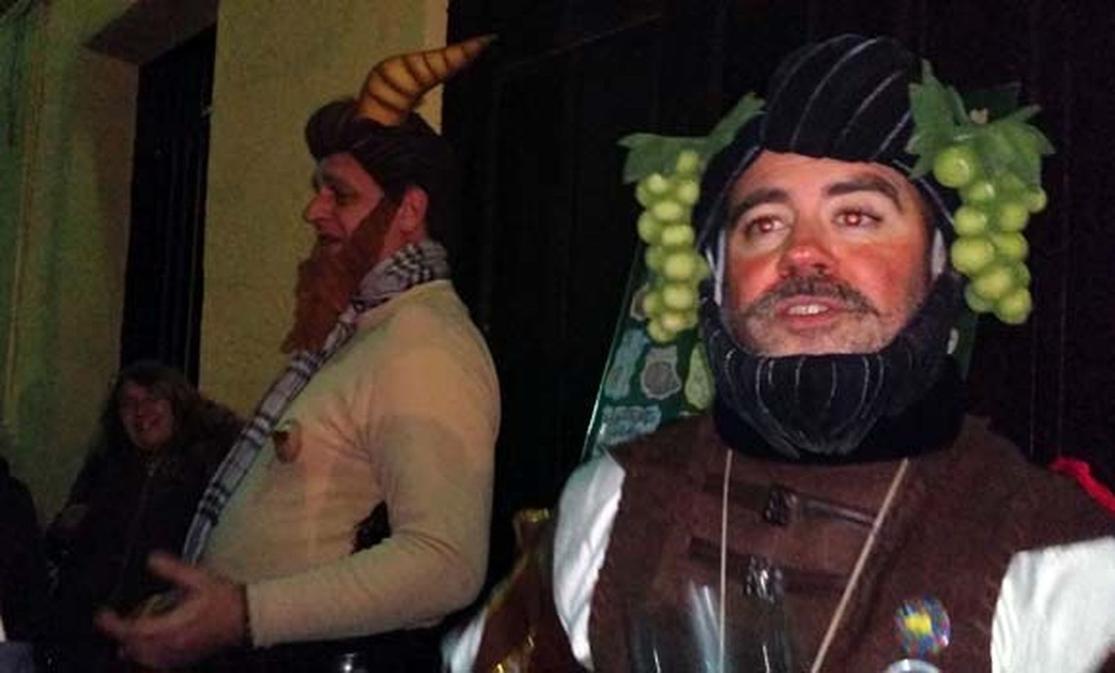 Pura genialidad. Así es el primer premio de romanceros, tanto en el certamen oficial como en el concurso de la peña La Palma-El Purri, 'Al pan pan y al vino de cabeza', de Sergio Torrecilla y Calixto Revuelta, clásicos de la modalidad. Un tipo mitológico, el del Dios Baco (que en realidad es Brancisco, pero los amigos le llaman mejor así) y el sátiro pan que les sirve para desarrollar un repertorio de arte. En años anteriores fueron 'The Wall, Maccabi de despertar', primer premio en 2012, 'Drac-grados y con tacones, te das queen' en 2013 y 'Los viajes de Marco Polo' el año pasado.