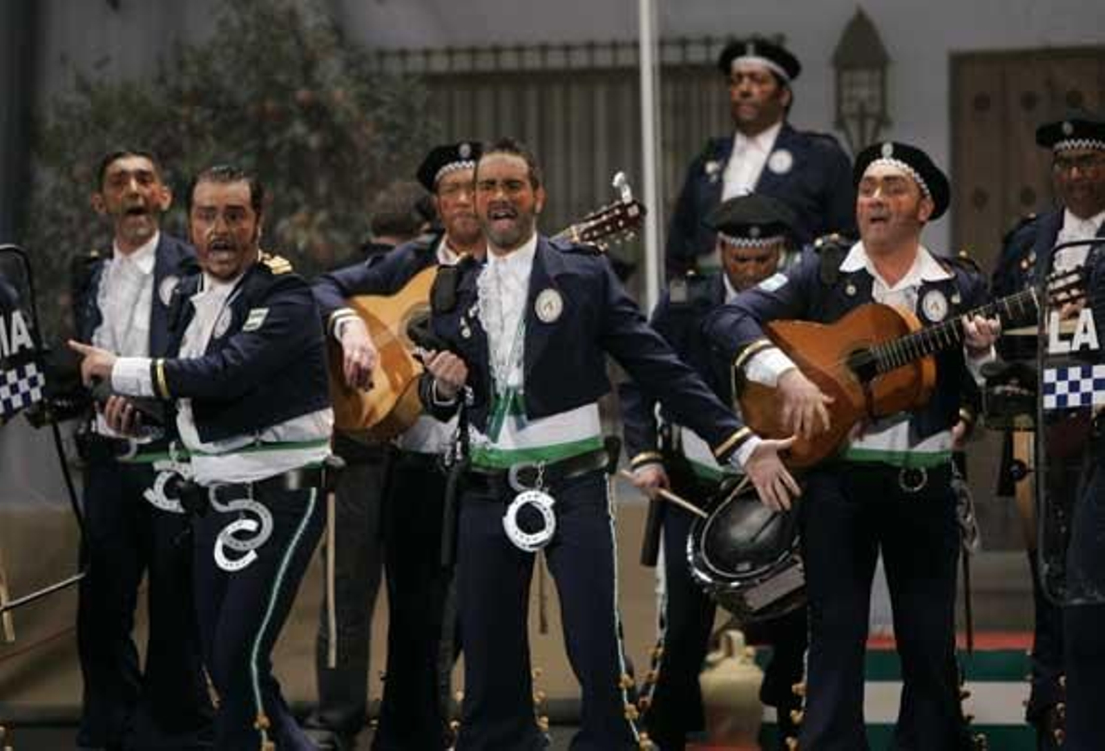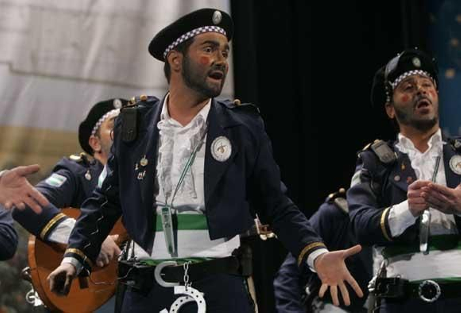Cuerpo de policía de toda Andalucía. Tipo mitad rocieros, mitad policías. Primer pasodoble en el que explican con mucho cachondeo el tipo. Su cuerpo no es como los otros, no hay corrupción. En su comunidad no le dan la autoridad al primer carajote. Buena letra, con mucha guasa, y gran música. Se nota el sello de Juan Carlos Aragón en la música, metida en el tipo. En el segundo pasodoble cuentan que fueron escoltas de la familia real. Buenos golpes. Muy buenos los pasodobles, muy bien defendidos. Primer cuplé para un perro que tienen en el cuerpo, simpático. En el segundo hacen una redada en el autobús de una chirigota antes de llegar. Muy buen remate, en el que de nuevo sale el perro policía de nada. Buenos golpes en el popurrí, interpretado con mucho arte. Muy buen repertorio, repleto de humor e ironía. El público les despide como merecen, al grito de ¡chirigota, chirigota!