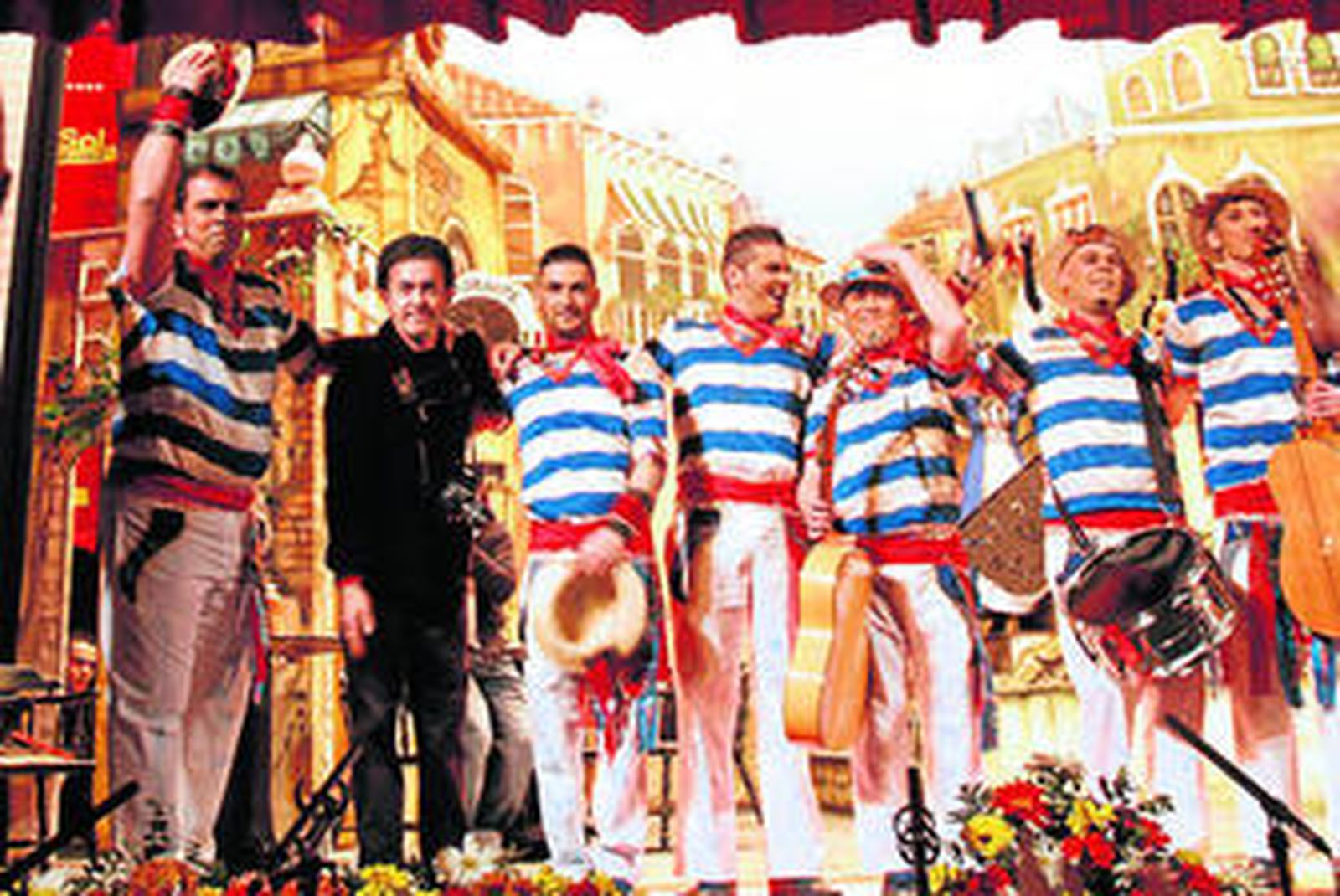 Antes de los cuplés, entran en la discoteca representantes de chirigotas participantes en el Concurso. Bonito detalle. El primero para la versión del capitán del Costa Concordia, también ya lo hemos escuchado, donde por las explicaciones que da, aunque el tío sea de Italia "parece que es gaditano". Siguiente al programa Acorralaodos, a los personajes que participaban con final para la chavala que tenía mucha cabida, de hecho, dicen que ha muerto electrocutada por lavarse el mismo en una palangana.