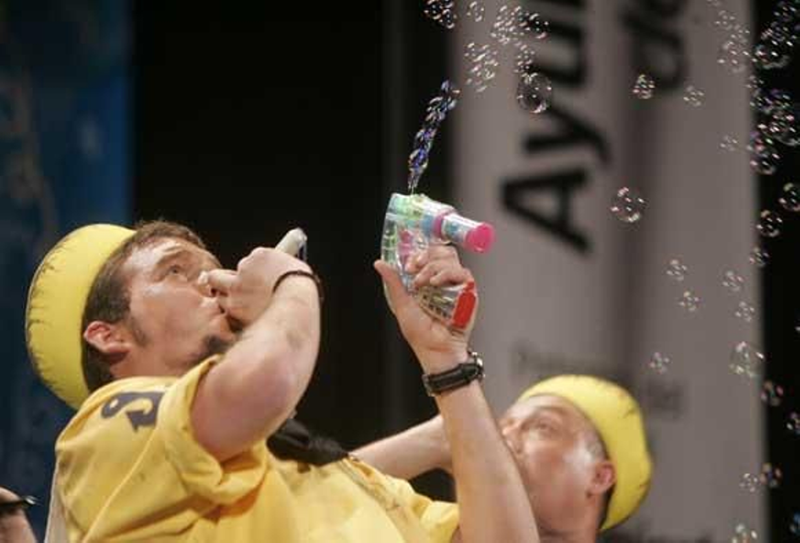 Regresa al Falla el submarino amarillo de Manolito Santander. Primer pasodoble a la Constitución, desvirtuada por políticos que no ven más allá de sus propios intereses. No era esa la idea de los que redactaron la Pepa hace casi doscientos años. Segunda letra para el castillo de San Sebastián, que no debería ser juguete para fiestas de ricos sino seguir siendo el castillo de los caleteros. Mensaje final con una pancarta que reza 'Obras en la Caleta ¡No!' y reparto de octavillas en contra de las modificaciones en esta zona del litoral gaditano. Primer cuplé para lo mucho que ha llovido en los últimos días, normalito. Primer cuplé que se oye en el concurso para 'el hijo de Satán' de Chiclana, líder de una secta. Original. Mucho cadismo en el popurrí.
