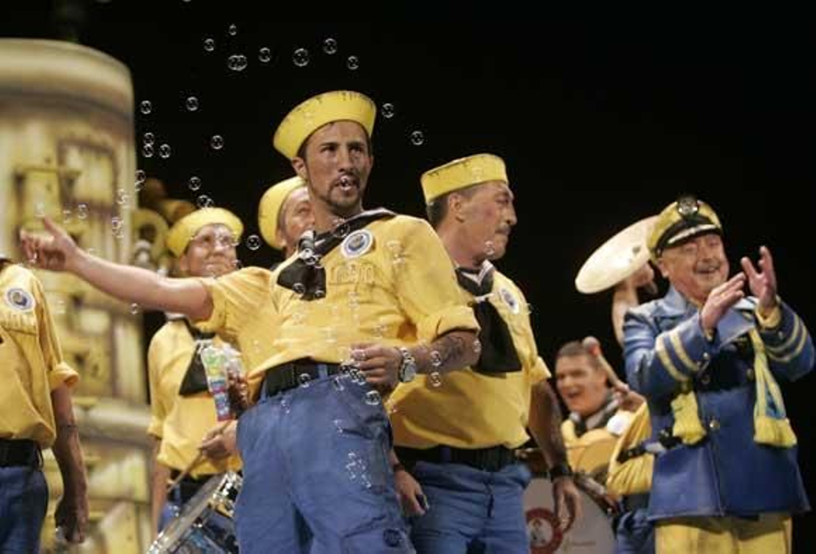 Manolito Santander aparca su submarino en las tablas del Falla. Tipo de marineros con detalles muy cadistas. Primer pasodoble, con una música preciosa y con mucho pellizco, para declarar su amor a Cádiz y a su Carnaval. Otros años Cádiz ha preferido los piropos de otros, pero aquí están ellos para seguir cantándole. Segundo para el modelo de vida que vende la telebasura, que oculta la verdadera realidad de España. Otra buena letra. Simpático primer cuplé que empieza con palito a Entrecatedrales y acaba con cachondeíto con la situación liguera del Xerez. Segundo para lo cariñosos que son los de Gran Hermano. No está mal, pero fue mejor el primero. Está gustando la renovada chirigota de Santander, se ha ganado al público. Qué calor está pasando Manolo... Buenos puntos en el popurrí, muy animado. No paran un momento. Muy bonito el final dedicado al Cádiz C.F. y cánticos cadistas para despedirse, contando con la complicidad del público.