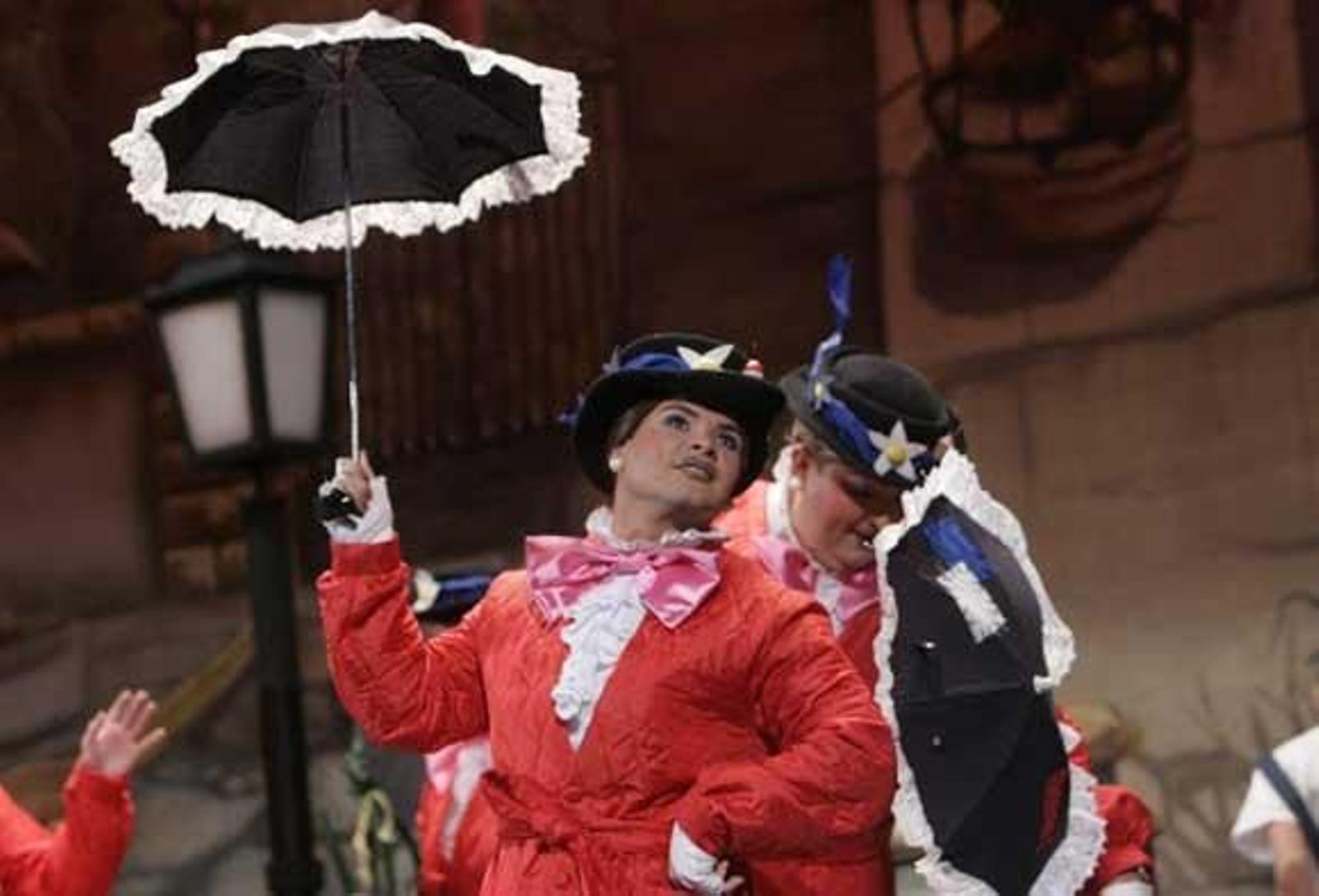 En preliminares: De niñeras, a lo Mary Poppins, van estos chirigoteros gaditanos. Bonitas músicas, aprovechando la película parodiada en el tipo. Bonito pasodoble en el que condenan la pederastia y la pedofilia, no hay nada más bonito que la sonrisa de un niño y es algo que no se debe corromper. Segundo para el teatro Pemán, abandonado hoy con lo que fue en el pasado. Buena letra, y sobre todo original. Primer cuplé para las cuentas que se suelen hacer en los periódicos, que nunca coinciden... seguro que el que hace las cuentas es el mismo que llevaba la caja en el Ayuntamiento de San Fernando. Buen cuplé, sí señor. Segundo para el premio Ondas entregado a Jorge Javier Vázquez, no tan bueno como el anterior pero que funciona incluso mejor para el público. Buenos cuplés de esta chirigota. Simpático repertorio, aunque el público está un poco frío. Su fuerte estuvo en pasodobles y cuplés.