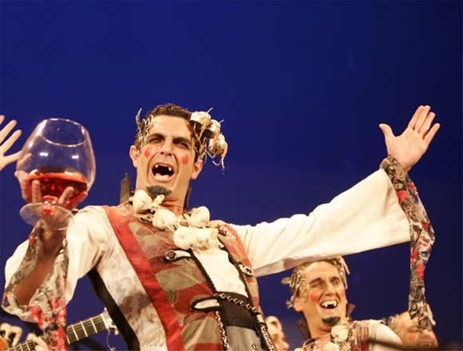 No cabe un alma en las gradas a punto de que se abran cortinas para recibir a la comparsa de Jesús Bienvenido. Cada uno de estos vampiros lleva un periódico para interpretar el primer pasodoble. Lo dedican a la playa de la Caleta, reconocida como monumento natural: para ellos es aún más, un templo. Que no la profanen. Dedican su segunda letra a un sueño, el de Martin Luther King, que luchó y murió por los derechos de los hombres de raza negra. Ahora el presidente Obama tiene la posibilidad y la obligación de mantener viva esa llama, que de su libertad depende la del resto del planeta. Buena letra. Se echan una amiga Erasmus a la que le enseñan de todo... simpático. Bocaítos, bocaítos, bocaítos... coreado el estribillo por parte del público. Segundo para Rajoy, mejor el primero, aunque la gente se divierte con su interpretación. Cada vez gusta más este popurrí, animado y con una música estupenda. El púbico lo tiene claro: quiere volver a oír el próximo viernes la conga del vampiro satirón. Claros aspirantes a estar entre los finalistas.
