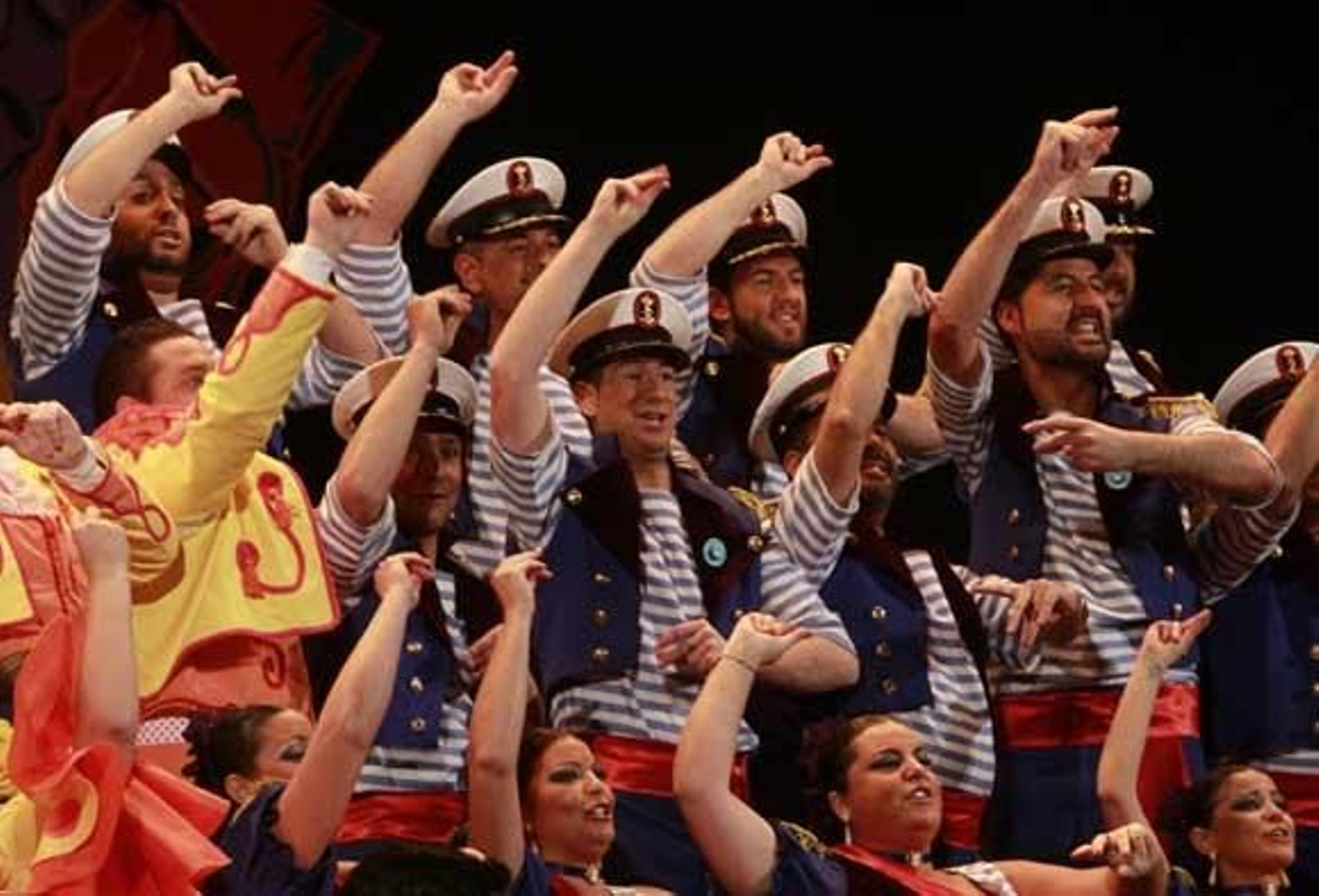 En la final: Empieza fuerte la Gran Final con el coro de Rivero, que ofrece dos tangos inéditos y ambos de gran nivel. El primero para el Bicentenario, para que se tenga en cuenta en la celebración a los que lucharon contra el invasor e hicieron posible que se promulgara La Pepa. Muy bonito el segundo para Andalucía, la tierra en la que las penas se van con un 'olé'. Bien encajada en el tipo esta letra. Cuplés para el jurado, recordándoles que Rivero ganó en su primera final y su Despojado siempre sale el primero, y segundo para las compras en Ikea. Algunas novedades en el popurrí, repertorio entretenido y muy bien interpretado. Perfecta la afinación de este coro.