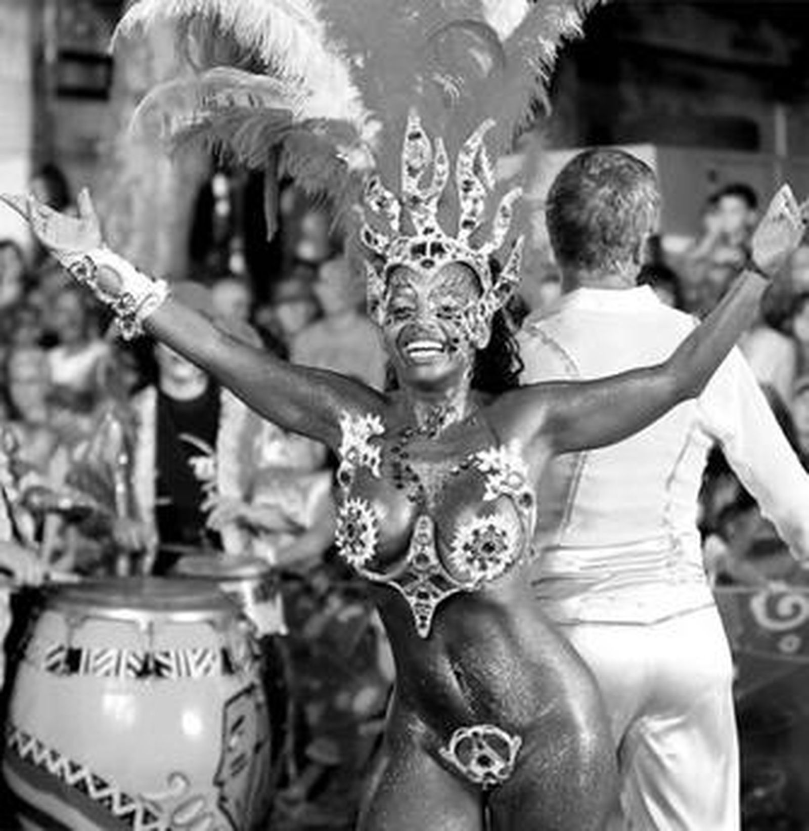 Pasan y pasan, durante dos noches más de cuarenta comparsas, participantes en el concurso, y se generaliza muchas más veladas por todo Montevideo, ya fuera del concurso oficial. Pero el jueves, el mundo se detuvo y el tronar de los tambores se diluyó cuando apareció tremenda vedette de color pantera, ante la que los fotógrafos se postraron en masa. La bomba sexual no llegó a estallar, porque la humanidad allí presente se conformó con el rito de adorarla. Negras como reinas, lubolos como príncipes, participar en ese desfile haría felices para toda la vida a muchos personajes de Cádiz, y he de confesar que esta última frase es de Vicente Sánchez.