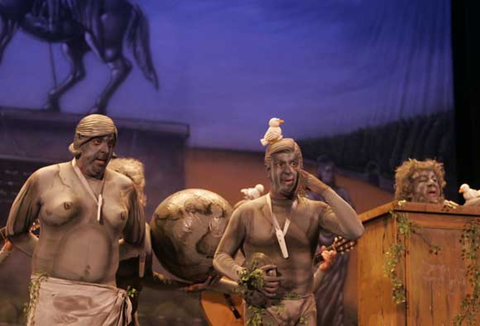 Música de 'Las estaciones' de Tino Tovar para la presentación de la chirigota murciana. con tipo de estatuas griegas. En su primer pasodoble se presentan; de nuevo Murcia está representada en el Carnaval de Cádiz. Segundo pasodoble a Tino Tovar, compañero de agrupaciones de Geni Cheza, uno de los autores. Le desean suerte al empezar de nuevo, apropiada letra teniendo en cuenta que la comparsa de Tino les seguirá en unos minutos. Suena bien esta chirigota. Primer cuplé a los documentales del National Geographic, rematado con demasiada guasa. Segundo a la ley que ha eliminado las bolsas de plástico, un poco mejor que el anterior. Buenas músicas en el popurrí, en el que dan el porqué de la elección de Río de Janeiro como sede de los Juegos Olímpicos. Vistas las candidaturas, nadie se extraña. Un par de cuartetas con mucho arte en el popurrí. El fauno, sembrao. Deja buena imagen la chirigota murciana.