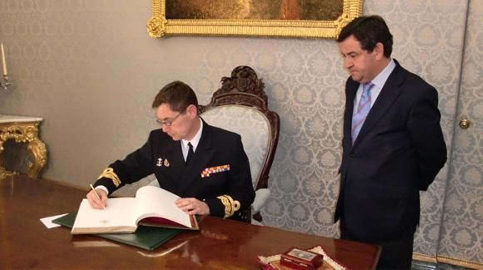Ambos mantuvieron una reunión tras firmar el jefe de la base naval en el Libro de Honor de la Diputación.