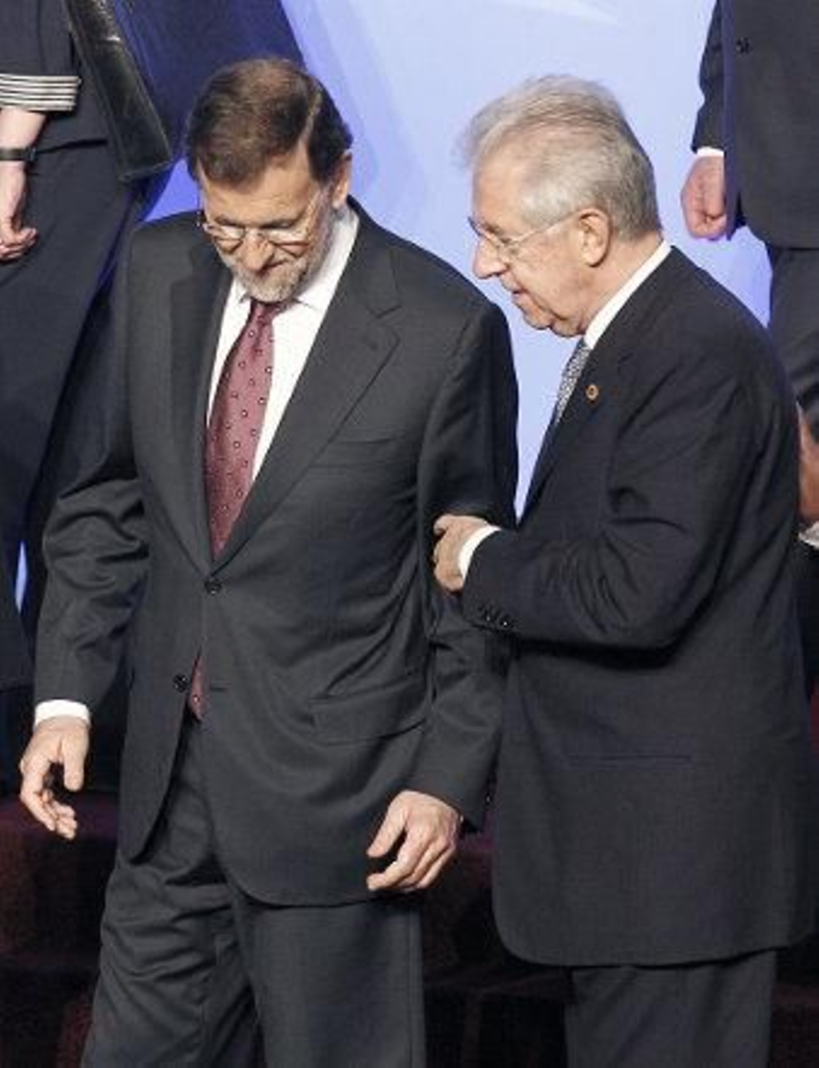 Monti se ha acercado a Rajoy tras la foto de familia de los asistentes a la cumbre de la OTAN que se celebra en Chicago y ha aprovechado el momento, cogiéndole del brazo, para invitarle a la cita, según han informado fuentes del Ejecutivo español. El primer ministro italiano anunció la reunión el sábado en una rueda de prensa en Camp David (EEUU), donde se reunió el G8, y destacó su interés por concertar posiciones ante la cumbre que se celebrará en Bruselas el 28 y el 29 de junio.