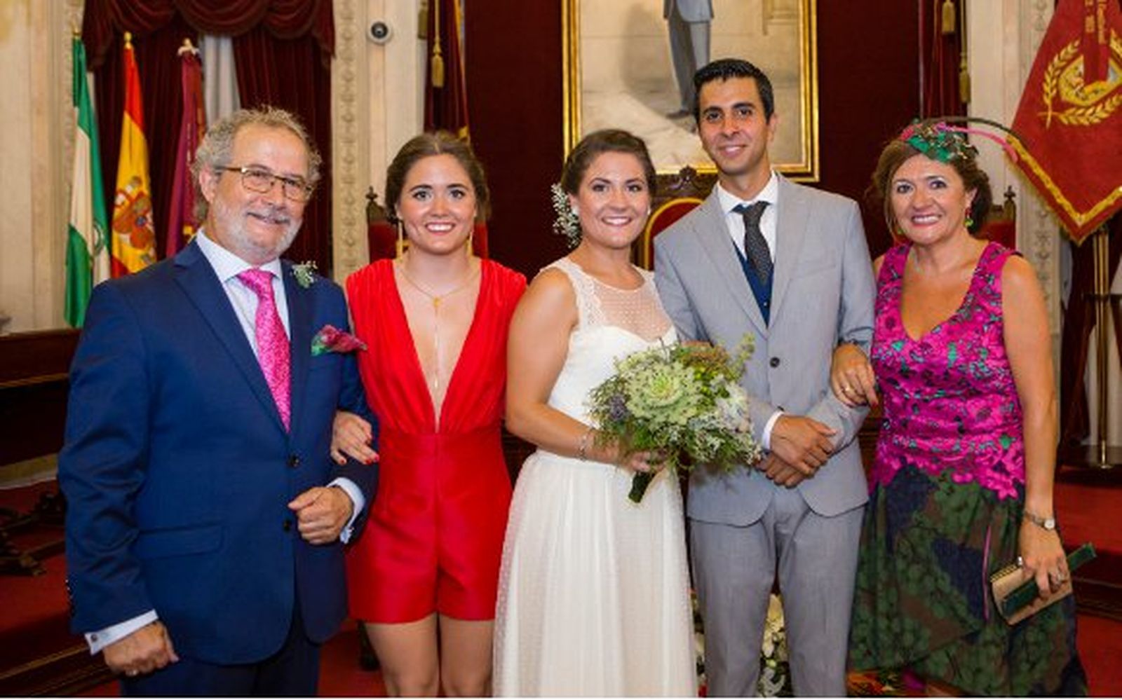 EL Salón de Plenos del Ayuntamiento de Cádiz fue el escenario para la celebración del matrimonio de Laura Esteban Riba y Lino García Mariñas. La ceremonia fue oficiada por el teniente de alcalde Martín Vila, ejerciendo de padrinos José María Esteban y Maribel Mariñas. Tras finalizar la ceremonia, los invitados se trasladaron a la finca 'La Carreña', en Jerez de la Frontera, donde tuvo lugar un almuerzo seguido de baile, música y cena, prolongándose el festejo hasta la madrugada.