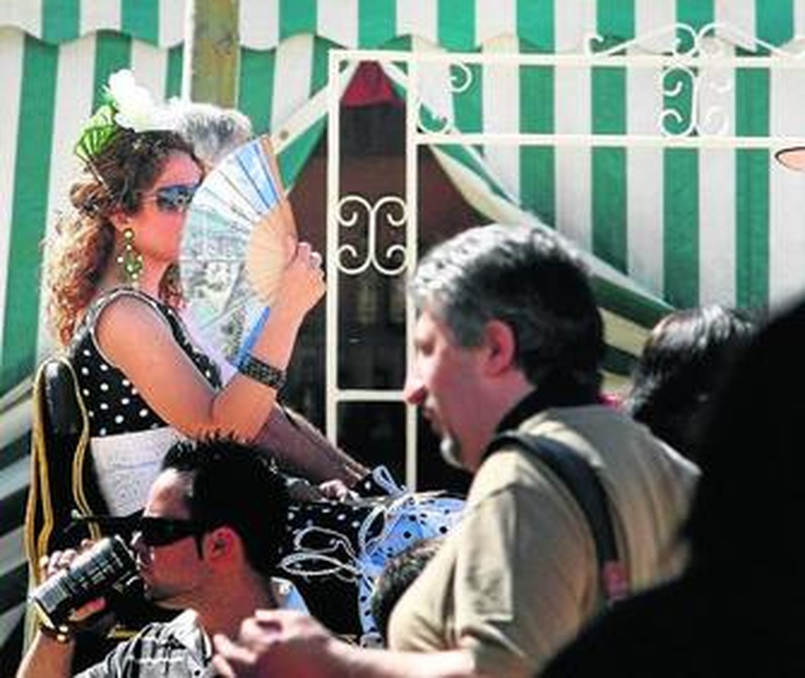 Tras el aire fresco de las últimos días, el sol llegó con fuerza en la víspera de la clausura de la Feria de la Primavera y Fiesta del Vino Fino. Una jornada en la que las articulaciones de las muñecas tuvieron que ejercitarse, y no precisamente bailando sevillanas, sino abatiendo los abanicos para refrescar el ambiente. Y es que el calor, que empezó tímidamente a picar el sábado, apretó los dientes para hacerse notar el domingo, cuando ni las casetas equipadas de ventiladores pudieron mitigar la temperatura ambiente. Sin embargo, esto no afectó a las personas que asistieron al Real, que estuvo muy animado, teniendo en cuenta que hoy es día festivo.