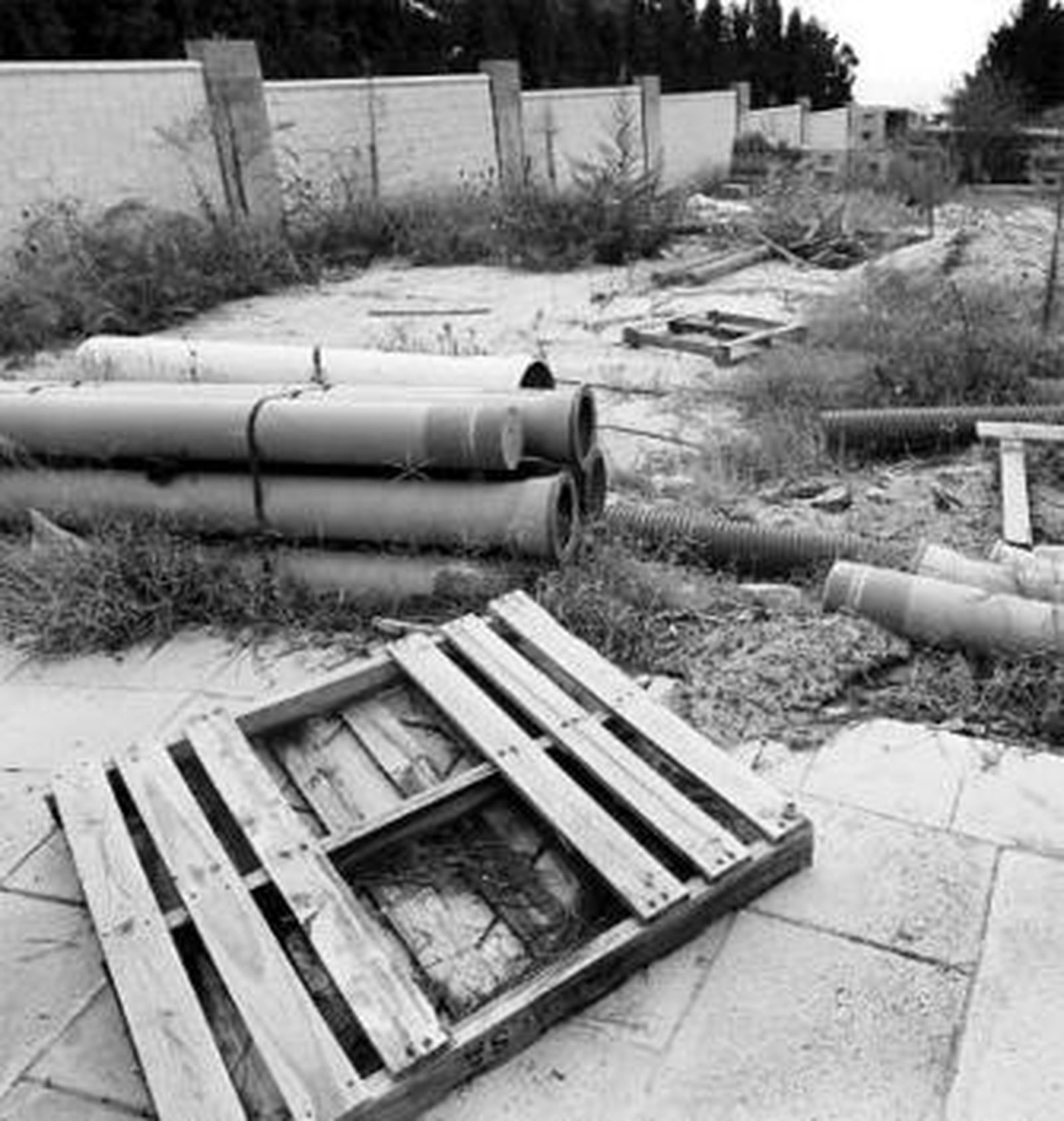 Sin embargo, la estampa que presenta ahora el antiguo bosque no es la que se le presupone a una moderna urbanización costera en proceso de construcción. Todo lo contrario, actualmente sólo quedan viejos tocones, pilas de vegetación seca, restos de obras, tubos de plásticos, alcantarillas abiertas y hasta farolas tiradas en el suelo. Aún así, la naturaleza se abre paso poco y poco y, tras la primavera y el verano, algunas plantas han conseguido sobreponerse, dando algunas pinceladas de verde al desolado bosque.