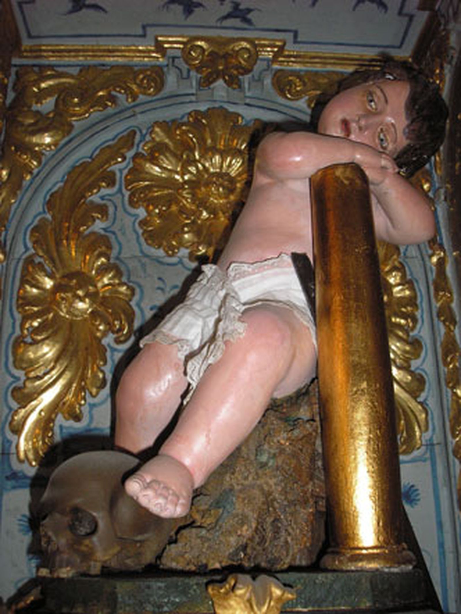 En la clausura de los antiguos conventos femeninos existentes todavía en El Puerto (Capuchinas, Concepcionistas y Espíritu Santo) se conservan, entre otras esculturas de interés, una serie de imágenes de Niños Jesús de diversa iconografía. Queremos llamar la atención de los denominados Niños de Pasión mediante una síntesis basada en el análisis de cinco imágenes seleccionadas que ilustran diversos momentos pasionistas conocidos como Cristo de Humildad y Paciencia, Nazareno y Flagelado dependiendo de su actitud: sedente con la cabeza ladeada y apoyada en una mano, erguido con cruz, corona de espinas y cesta con instrumentos pasionistas en la mano y apoyado en una columna presagiando la Flagelación, respectivamente. Agradezco sinceramente a las religiosas de dichos conventos la oportunidad de permitirme estudiarlos y fotografiarlos.