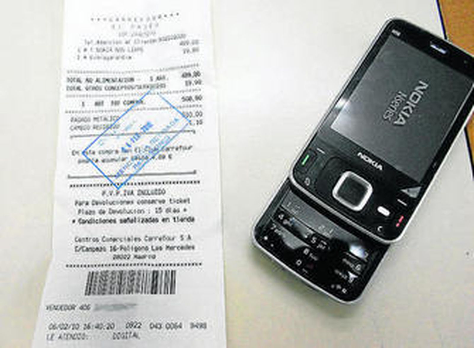 Un Nokia N96 valorado en 489 euros euros ha enfrentado a un cliente con Carrefour. El presunto afectado, Francisco Yepes Jiménez, de 32 años, adquirió el pasado sábado el citado terminal libre en la tienda que posee la cadena francesa en el Centro Comercial El Paseo, y según su versión de los hechos, al abrir la caja del aparato, que al parecer no estaba precintada, el móvil no se correspondía con el modelo original, sino que se trataba de una réplica de exhibición inútil para su uso.