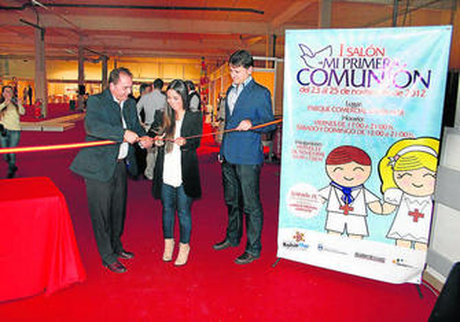 El concejal de Comercio y Nuevas Tecnologías, Raúl Capdevila, acompañado por Juan José Flor, gerente de la empresa Gestoflor, y María González, representante del parque comercial Bahía Mar, inauguró en la tarde de ayer la primera edición del Salón Mi Primera Comunión, que permanecerá abierto hasta las nueve de la noche de mañana.