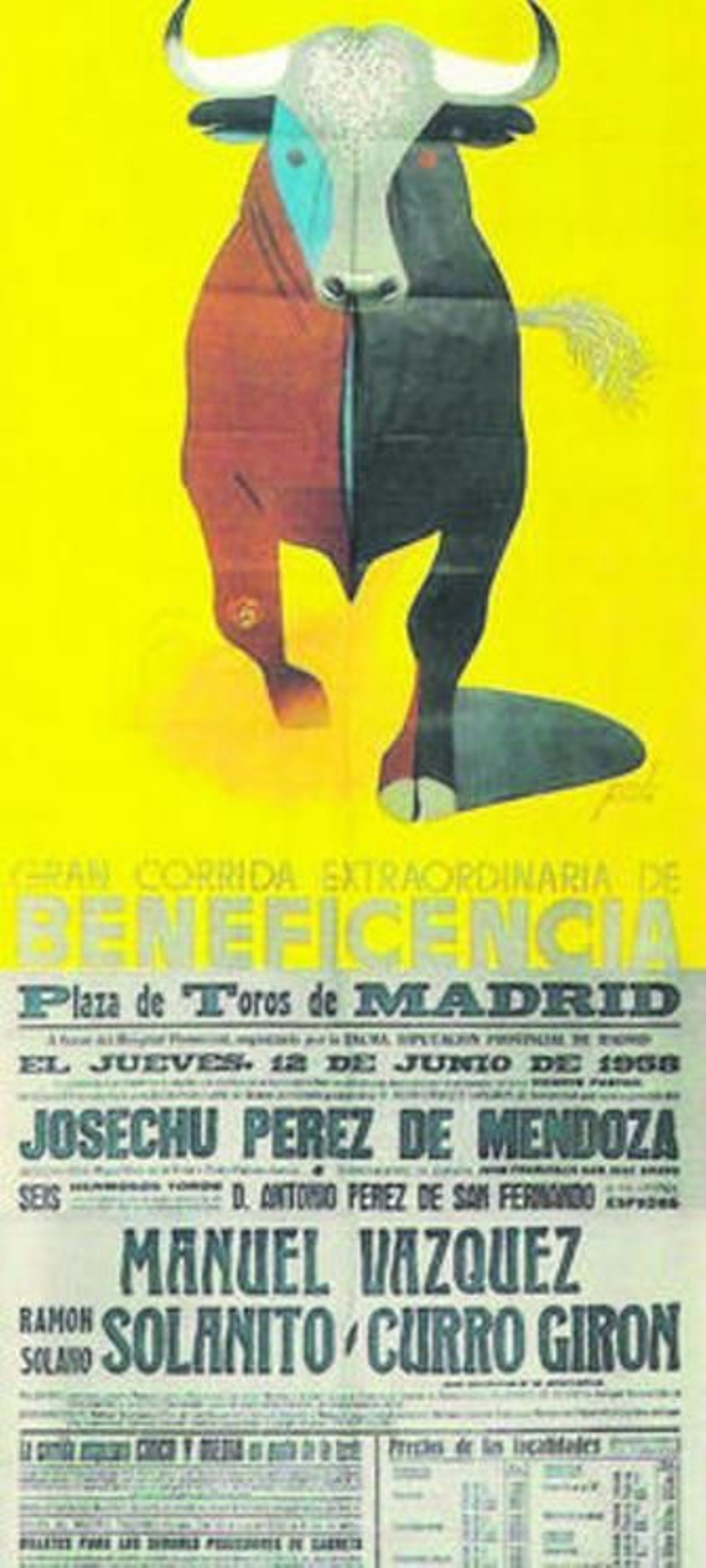 La prensa de la época llegó a decir con respecto a este cartel: "Ha venido a revolucionar la tradicional propaganda de la lidia de reses bravas. Y ha conseguido precisamente eso: dar realce a la bravura del toro y al valor del torero. Ahí se ve al diestro, empequeñecido y audaz, ante la mole potente de un testuz vigoroso y vibrante de energía acometedor a, subrayada por el contorno blanquecino que rodea al toro, aparentemente hierático, pero dispuesto a la 'arrancada' y a hacerse dueño del ruedo".