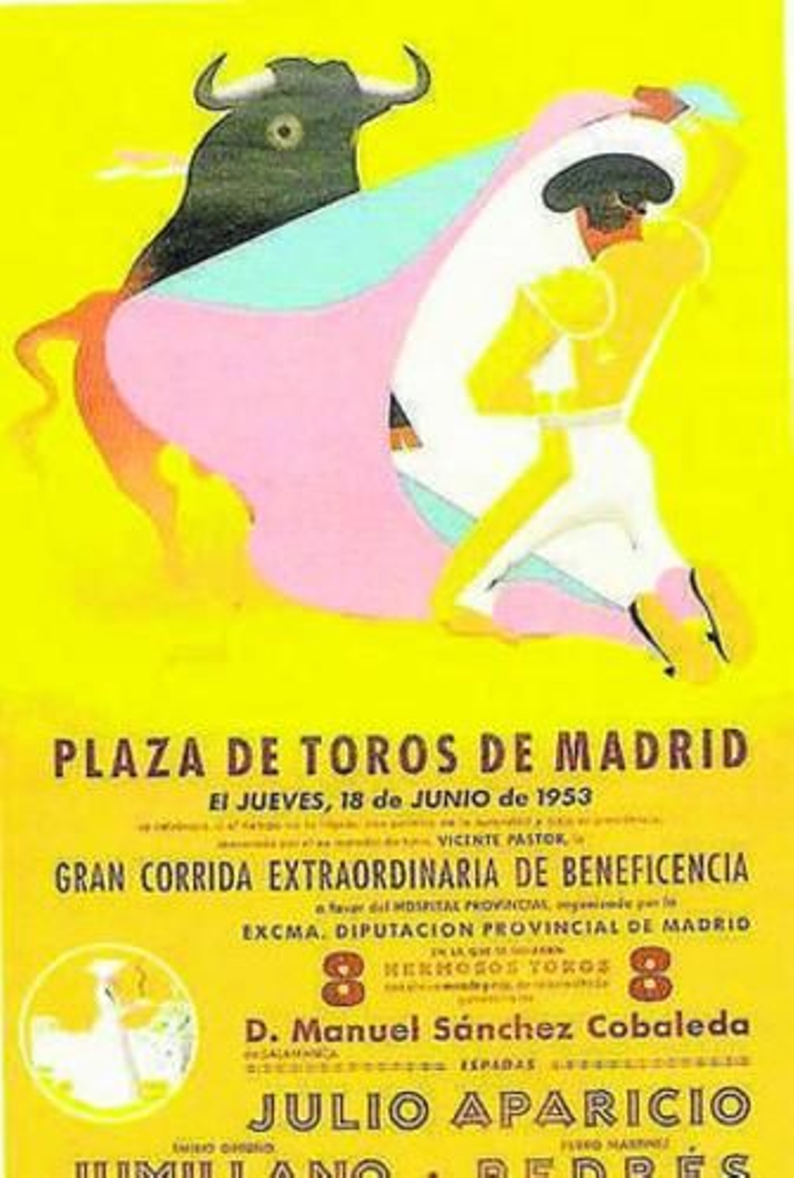 Pero el primer cartel de tema taurino, dentro de la obra de Manolo, con el que consiguiera un gran triunfo, fue el que realizó para el concurso de la Dirección General de Turismo, en 1950, y que llevaba por título "La fiesta de toros en España", con el que obtuvo el primer premio.