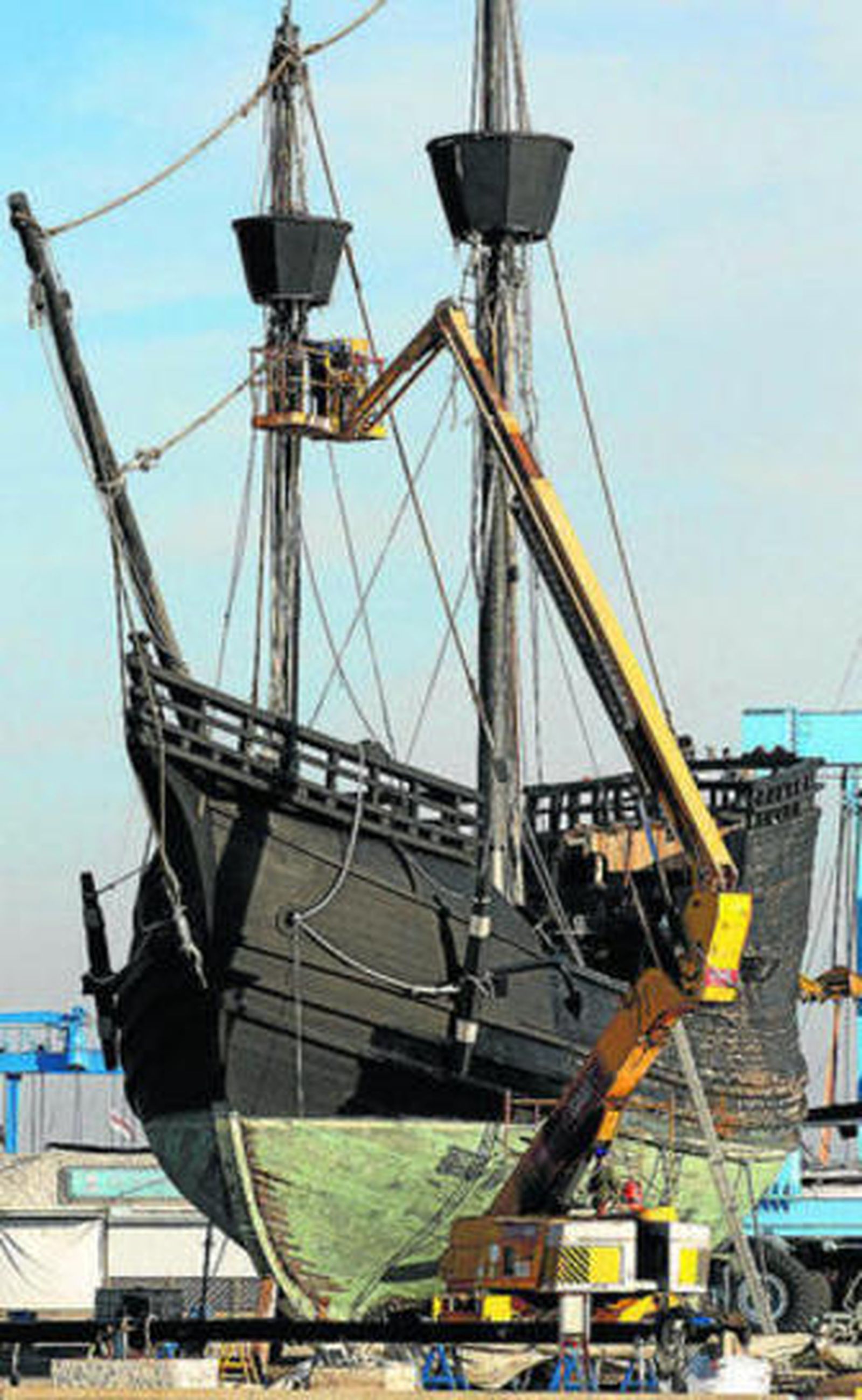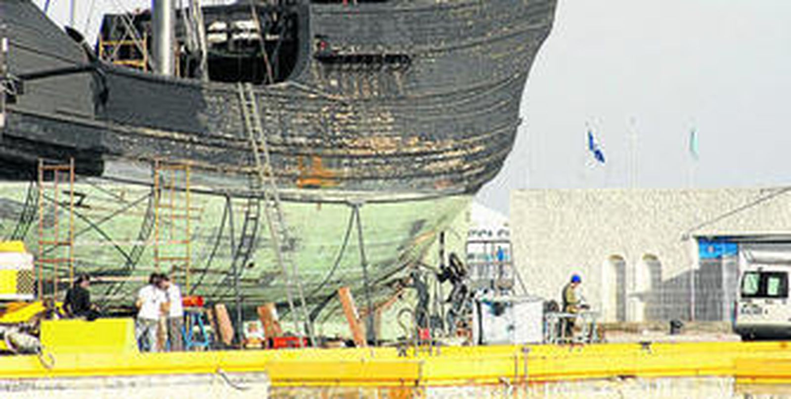 La réplica inicia sus reparaciones en Puerto Sherry para participar en el proyecto Descubriter Carpinteros de ribera y calafates arreglan el barco