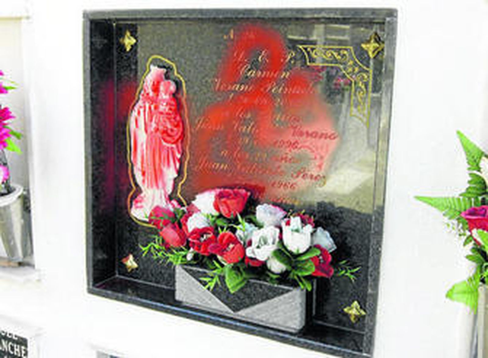 Nueve lápidas funerarias ubicadas en diferentes puntos del Cementerio Municipal fueron profanadas el pasado sábado al mediodía, con un spray permanente de color rojo.