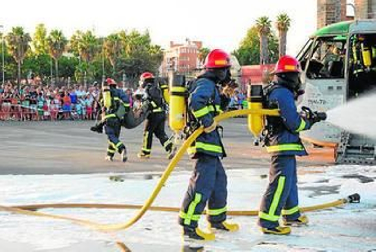 Miembros de la Armada Española de la Base Naval de Rota mostraron, el pasado viernes, cómo se actúa en casos de siniestros en aeropuertos. El ejercicio simulaba que se encontraban en un aeródromo donde se había producido el accidente de un helicóptero. Se usó espuma para controlar el incendio y procedieron al rescate del piloto y copiloto. Participaron un jefe de intervención y siete bomberos junto a un camión, elemento necesario para su demostración.