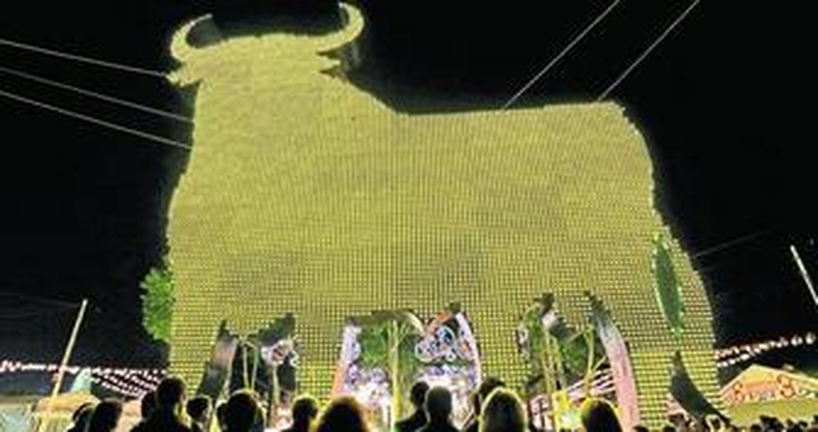 Eran las diez en punto de la noche cuando la espectacular portada del Toro de Osborne volvió a iluminarse con las más de 20.000 bombillas que recubren la estructura del astado. Un año más se cumplía con el ritual de que la persona oriunda de la ciudad a la que se dedica la Feria, en este caso Málaga, que más tiempo lleva viviendo en El Puerto sea la encargada de accionar el dispositivo extraordinario que baña de luz las calles de Las Banderas.