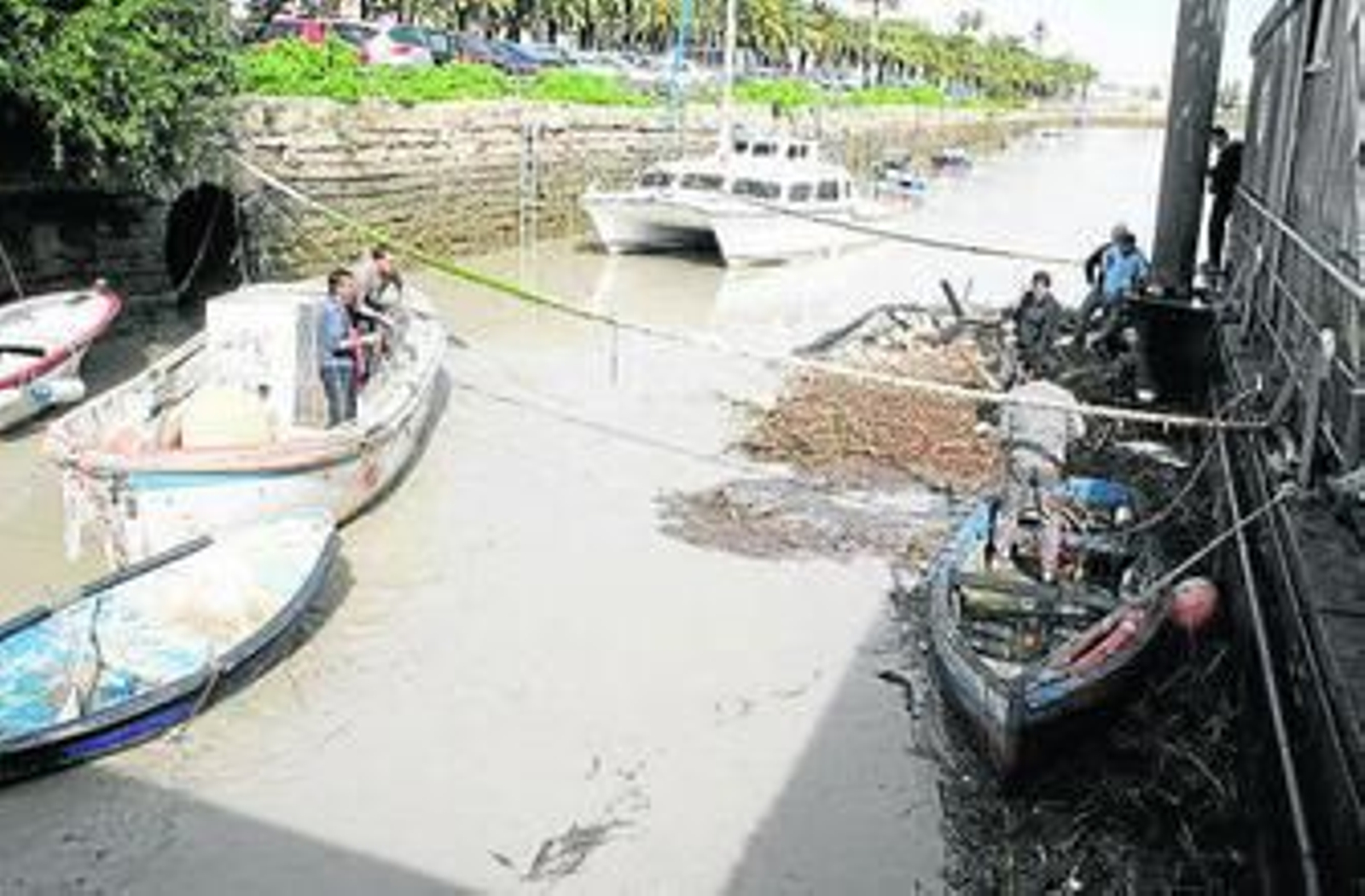 El enorme caudal de agua que transportaba el río Guadalete provocó la ruptura de las amarras de algunos de los barcos atracados, todos ellos de pequeña eslora, dejándolos a la deriva y mandando al fondo del río a otros. Algunos de los pescadores de pesca artesanal que vivieron en la zona los momentos más críticos, han perdido sus embarcaciones y no todos tienen un seguro que lo cubra para recibir ayudas, viendo desaparecer su herramienta de trabajo. "La corriente, que iría a una velocidad de unas 14 o 15 millas, arrastró mi embarcación y a saber dónde está ahora", cuenta con aire resignado uno de ellos, marinero y pensionista con toda una vida a bordo. Según sus estimaciones, unas siete u ocho embarcaciones han podido hundirse, a las que hay que sumar las que fueron arrastradas por la corriente.