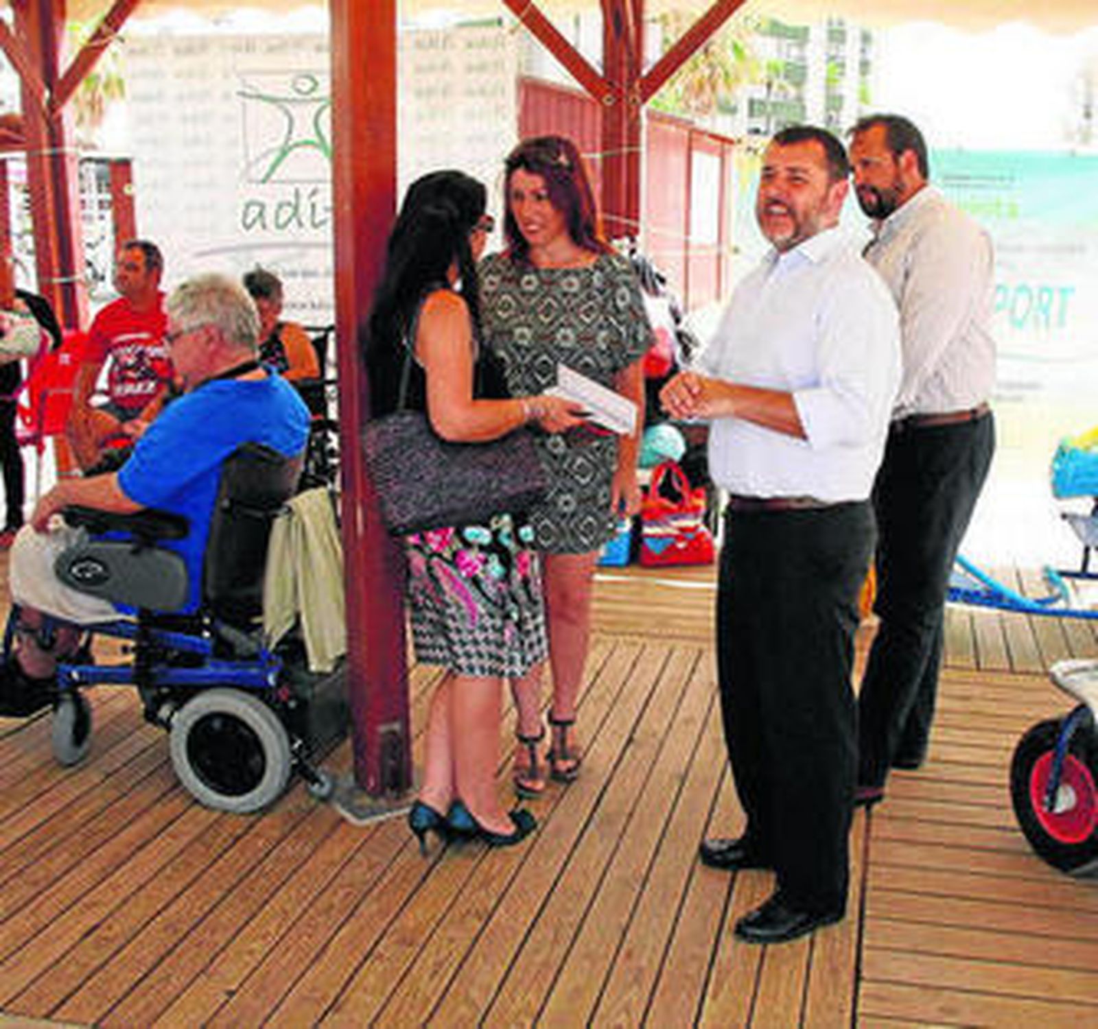 Ayer al mediodía se inauguró en el módulo habilitado y adaptado para personas con diversidad funcional, en la Playa de Valdelagrana, el programa 'Hidrosport' de ayuda al baño y fisioterapia en el mar para personas con discapacidad. En el primer día de esta décima edición del programa, estuvieron presentes representantes de los diferentes colectivos que hacen posible este programa, como son María del Carmen Molina, presidenta de la asociación La Gaviota de Personas con Diversidad Funcional; el alcalde Alfonso Candón, la concejala de Bienestar Social e Igualdad, Mariola Tocino; el concejal de Policía Local y Protección Civil, Carlos Coronado Rosso, y Damián Bornes, edil responsable de Obras y Mantenimiento Urbano.