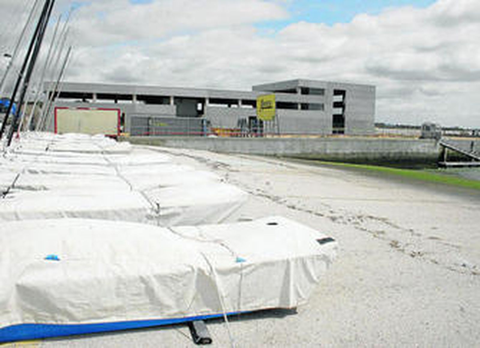 Ahora se tiene que construir la residencia deportiva, que se situará en la parte oriental del muelle ganado al mar, y cuyos cimientos y estructura de hormigón ya se están levantando, para proceder después a la instalación de los módulos prefabricados que forman los muros, lo que se viene realizando con una grúa de grandes dimensiones que se encuentra en el lugar.